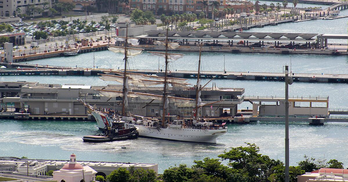 "The Eagle has a long history of sailing the Caribbean," said Captain Eric King, Commander of U.S. Coast Guard Sector San Juan. "Cadets are really looking forward to sharing this 82-year-old maritime treasure with the people of the Dominican Republic and Puerto Rico as part of Eagle's 2018 summer cruise. (Sgt. Josue Rivera/ National Guard)180617-N-MZ078-1089