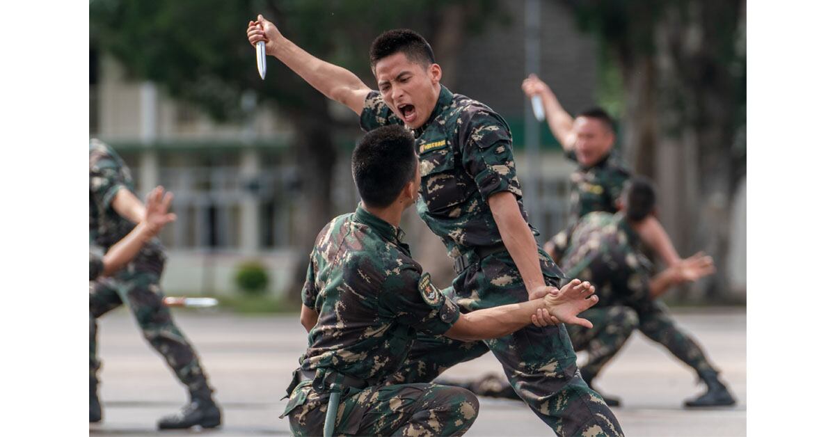 Members of the Chinese People's Liberation Army perform drills during a demonstration at an open day at the Shek Kong Barracks on June 30, 2018, in Hong Kong. (Anthony Kwan/Getty Images)Croatian soldiers of the NATO-led peacekeeping mission in Kosovo watch as a helicopter takes off during activities marking the International KFOR Day at the military camp in Pristina on July 1, 2018. (Armend Nimani/AFP via Getty Images)Military Recovery mechanic Ian Pew, center, clashes with a man dressed as Star Wars character Darth Vader as they put on a show as part of the National Armed Forces Day in Stirling, England, on June 30, 2018. (Mark Owens/British Ministry of Defence via AP)A French military diver swims July 2, 2018, above the wreck of a U.S. Army Air Force P-47 Thunderbolt (Warthog) fighter plane, which crashed in 1944 during World War II off the French Mediterranean island of Corsica. (Boris Horvat/AFP via Getty Images)Military personnel parade past British Prime Minister Theresa May, center, and dignitaries during the national Armed Forces Day celebrations at Llandudno, north Wales, on June 30, 2018. (Oli Scarff/AFP via Getty Images)Syrian government forces hold their weapons during a government-guided tour in the village of al-Sourah, province of Daraa, on June 29, 2018. (Youssef Karwashan/AFP via Getty Images)Military aircraft enthusiasts watch as a U.S. Air Force F-15 fighter jet travels at low altitude through the "Mach Loop" series of valleys near Dolgellau, north Wales, on June 26, 2018. (Oli Scarff/AFP via Getty Images)The Royal Air Force Aerobic Team, the Red Arrows, perform an aerobatic display during the national Armed Forces Day celebrations at Llandudno, north Wales, on June 30, 2018. (Oli Scarff/AFP via Getty Images)Soldiers demonstrate their skills during a military parade at the Cherchell "Houari Boumediene" in Algiers on July 1, 2018. (Anis Belghoul/AP)Israeli soldiers walk past a bunker with a mobile artillery piece seen deployed near the border with Syria in the Israeli-annexed Golan Heights on July 1, 2018. (Jalaa Marey/AFP via Getty Images)