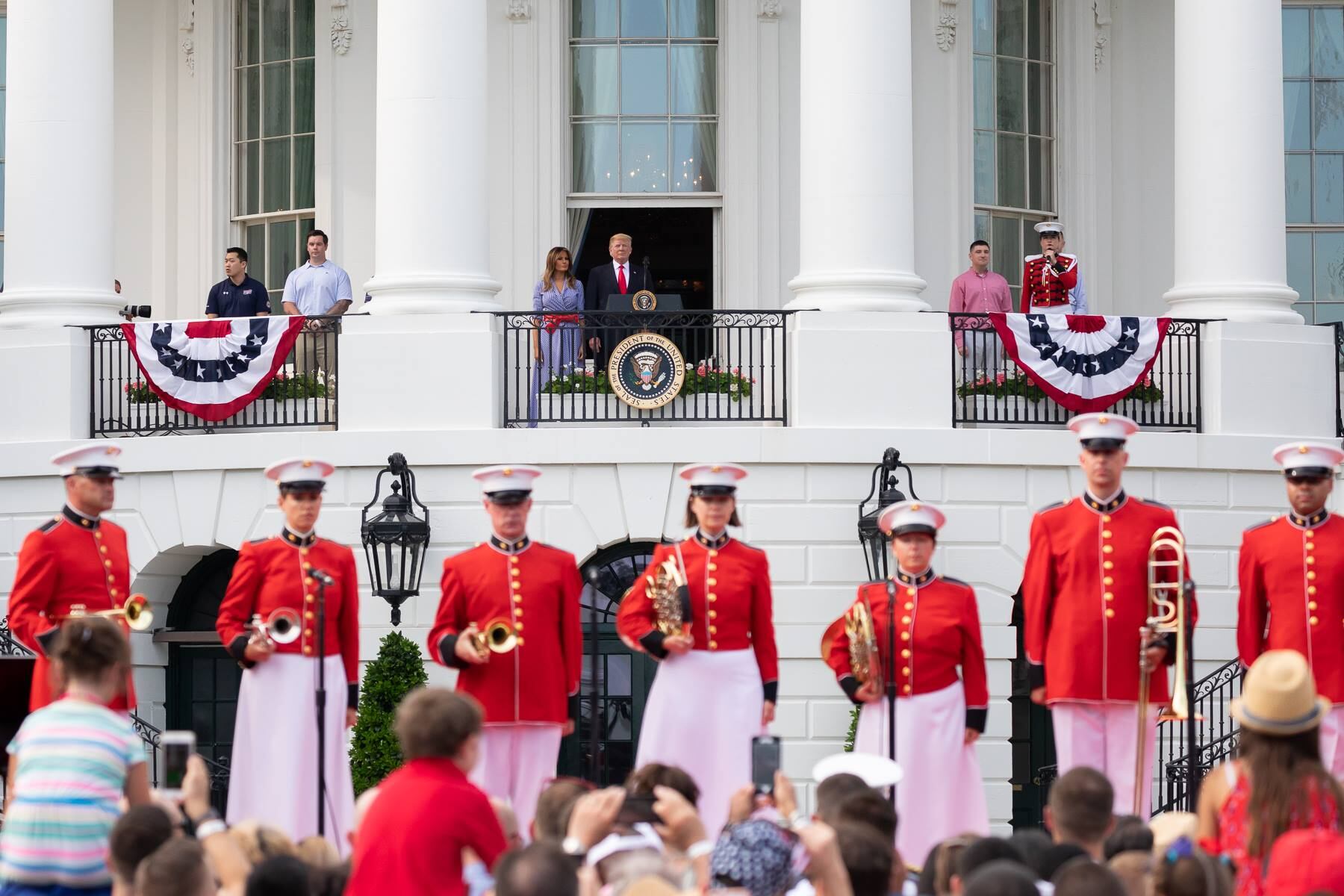 President Donald J. Trump and First Lady Melania Trump participate in a Fourth of July picnic with military families at the White House | July 4, 2018 (Official White House Photo/Andrea Hanks)President Donald J. Trump and First Lady Melania Trump watch Fourth of July fireworks at the White House | July 4, 2018 (Official White House Photo/Shealah Craighead)Members of the U.S. Navy Band Sea Chanters rehearse for the live broadcast of the annual Fourth of July celebration on the South Lawn of the White House. (U.S. Navy/Musician 1st Class David Aspinwall)Vice Adm. Richard Brown, commander, Naval Surface Force, U.S. Pacific Fleet serves as grand marshal for the 70th Annual Independence Day Parade. (U.S. Navy/Mass Communication Specialist 2nd Class Nancy C. diBenedetto)American Legion honor guard members perform in the Historic Smithville Fourth of July parade in Smithville, N.J., July 4, 2018. (U.S. Air National Guard/Master Sgt. Matt Hecht)Lt. Lauren McKinley, a reservist with the US Navy (right) and Capt. Carrie Lauderdale (left) enjoy a dazzling fireworks display at Norfolk's Town Point Park. The fireworks display was part of the City of Norfolk's 36th Annual Great American Picnic at Town Point Park, which honors the country's 242nd Birthday. (U.S. Navy/Civilian Public Affairs Officer Max Lonzanida)A boarding team from Coast Guard Station Boston patrols Boston Harbor during Independence Day celebrations, July 4, 2018. (U.S. Coast Guard/Petty Officer 2nd Class Lara Davis)Performers at the July 4 at the National Archives 2018 celebration. (U.S. National Archives)Performers at the July 4 at the National Archives 2018 celebration. (U.S. National Archives)Performers at the July 4 at the National Archives 2018 celebration. (U.S. National Archives)Fireworks at the U.S. Embassy in Berlin, Germany for the 4th of July 2018. (U.S. Embassy in Berlin)The U.S. Embassy in Uruguay celebrates July 4, 2018. (U.S. Embassy in Uruguay)The U.S. Embassy in Tallinn, Estonia celebrates July 4, 2018. (U.S. Embassy in Estonia)Celebrants at the U.S. Embassy in Estonia take 'as American as apple pie' seriously. (U.S. Embassy in Estonia)