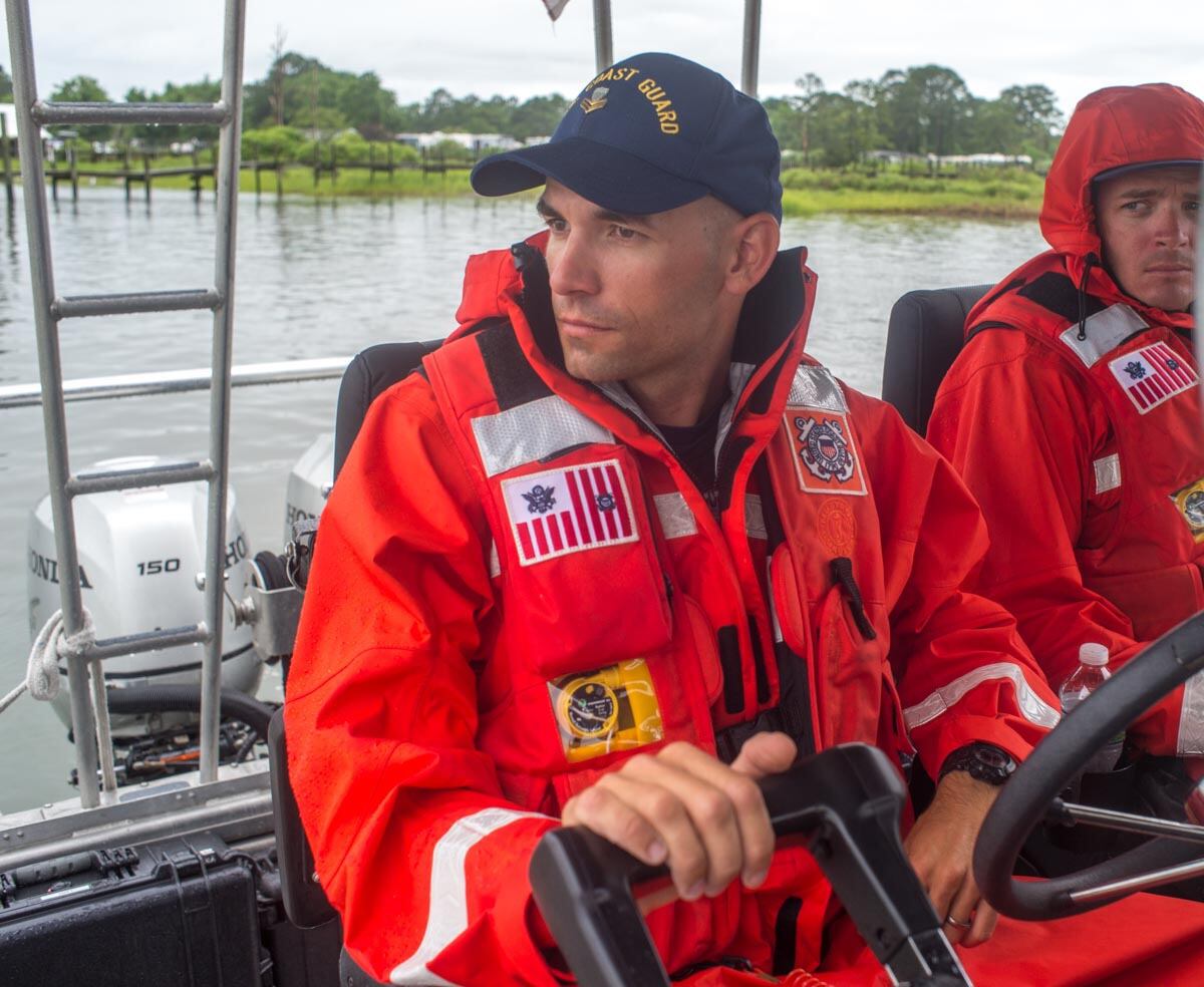 Chincoteague, Va. (July 25, 2018) Coast Guardsmen from Station Chincoteage arrive on station in the pre-dawn hours prior to the start of the Chincoteague annual pony swim. (photo by Joan Zopf-Faram/special)