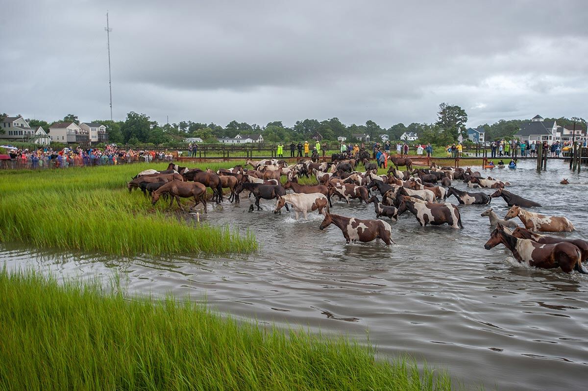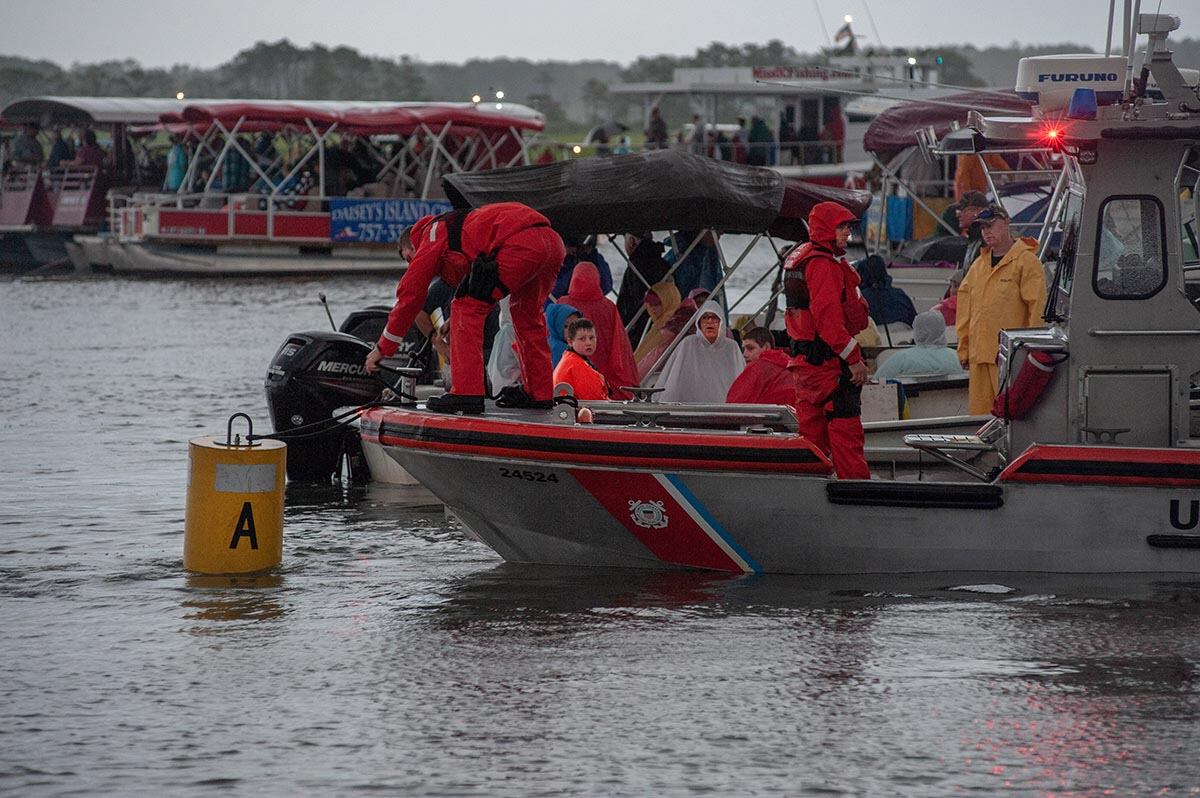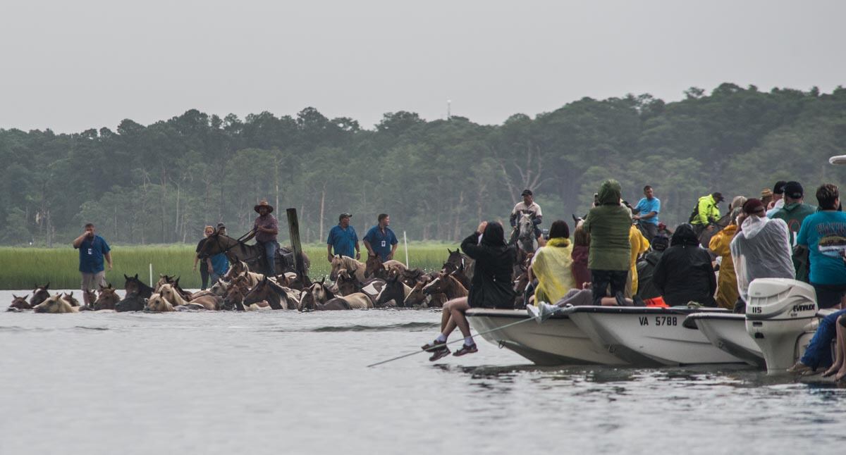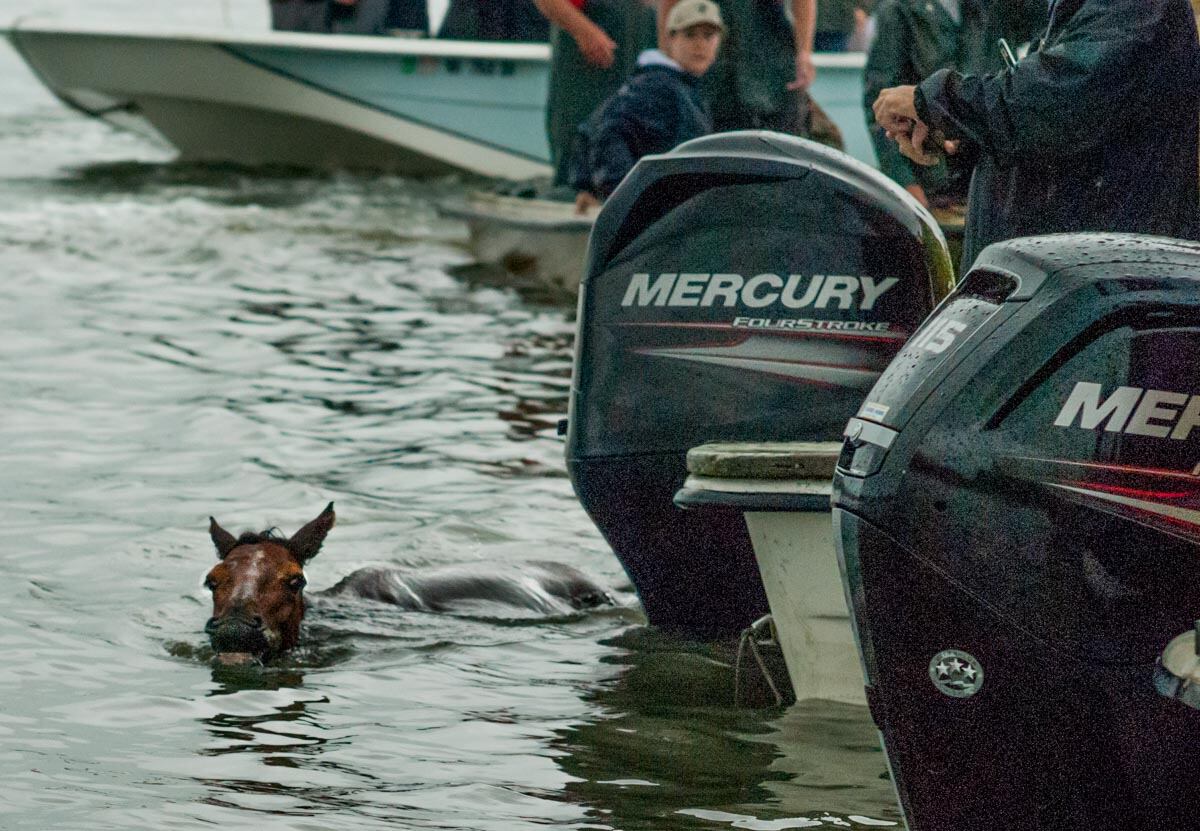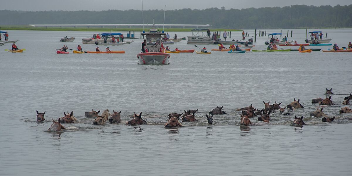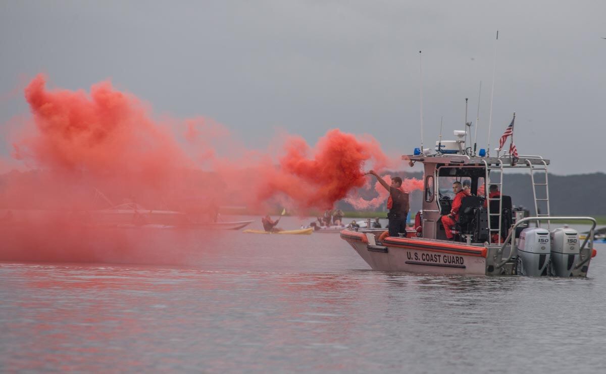 Chincoteague, Va. (July 25, 2018) Coast Guardsmen from Station Chincoteage arrive on station in the pre-dawn hours prior to the start of the Chincoteague annual pony swim. (photo by Joan Zopf-Faram/special)Chincoteague, Va. (July 25, 2018) Station Executive Petty Officer, BM1 Carlton Hargis watched the gathered boats during the Chincoteague annual pony swim. (photo by Mark D. Faram/Navy Times)Chincoteague, Va. (July 25, 2018) Coast Guardsmen from Station Chincoteage take reset the route prior to the start of the Chincoteague annual pony swim. (photo by Joan Zopf-Faram/special)Chincoteague, Va. (July 25, 2018) Coast Guardsmen from Station Chincoteage use smoke to alert that the Chincoteague annual pony swim has begun. (photo by Mark D. Faram/Navy Times)Chincoteague, Va. (July 25, 2018) The start of the Chincoteague annual pony swim as the ponies enter the water at Assageague (photo by Mark D. Faram/Navy Times)Chincoteague, Va. (July 25, 2018) Coast Guardsmen stand between boaters and kayakers as the ponies swim between Assateague and Chincoteague Islands during the annual pony swim. (photo by Joan Zopf-Faram/special)Chincoteague, Va. (July 25, 2018) Safe and sound, the ponies arive on Chincoteage Island after a 200-yard swim from Assateague island. (photo by Joan Zopf-Faram/special)Chincoteague, Va. (July 25, 2018) A lost pony weaves in and out of the crowd of spectator boats, off course during the swim. Coast Guardsmen from Station Chincoteage used their boat to guide the pony to shore. (photo by Mark D. Faram/Navy Times)Chincoteague, Va. (July 25, 2018) Chief Boatswain's Mate Ken Morris, Chincoteague Station Officer in Charge watches the annual pony swim from the dock. (photo by Mark D. Faram/Navy Times)