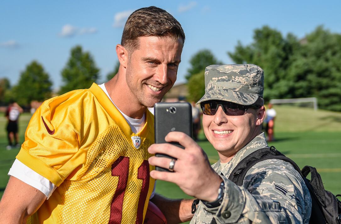 Washington Redskins take practice to Air Force base, spend the day with troopsThe team buses arrived to shouts and applause as families lined the entry way to see their favorite players.