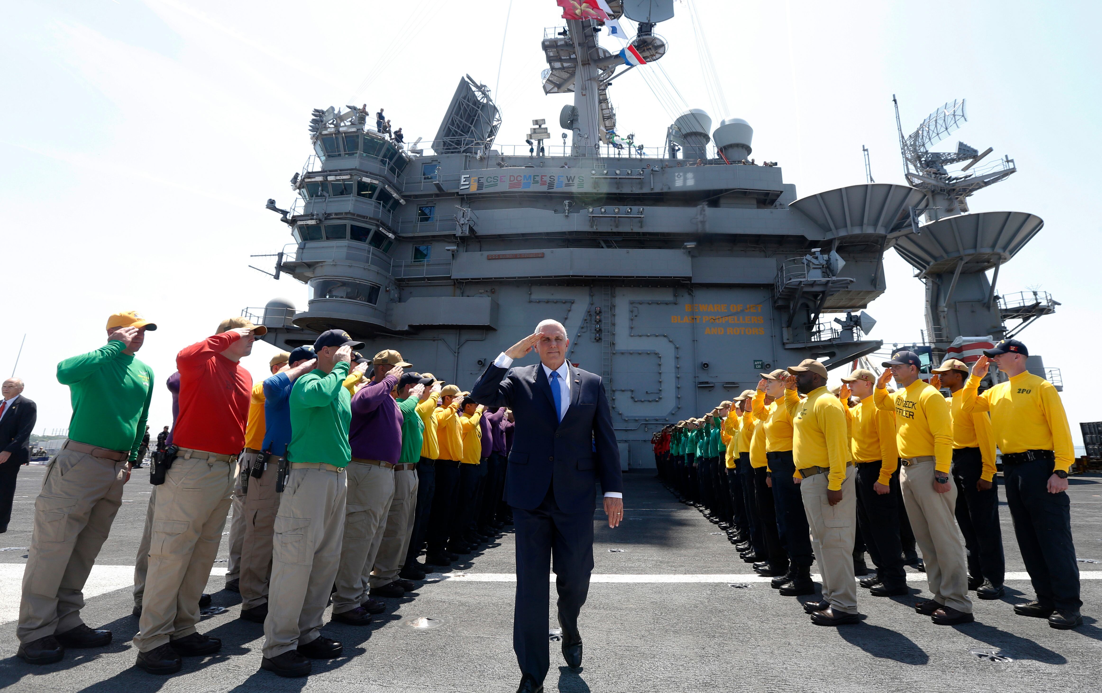 But Virginia Sen. Tim Kaine, the top Democrat on the SASC Readiness subpanel, said he deduced what was coming when he learned of Pence’s agenda for the day, a visit with Norfolk's business leaders would include a stop on the Nimitz-class carrier.