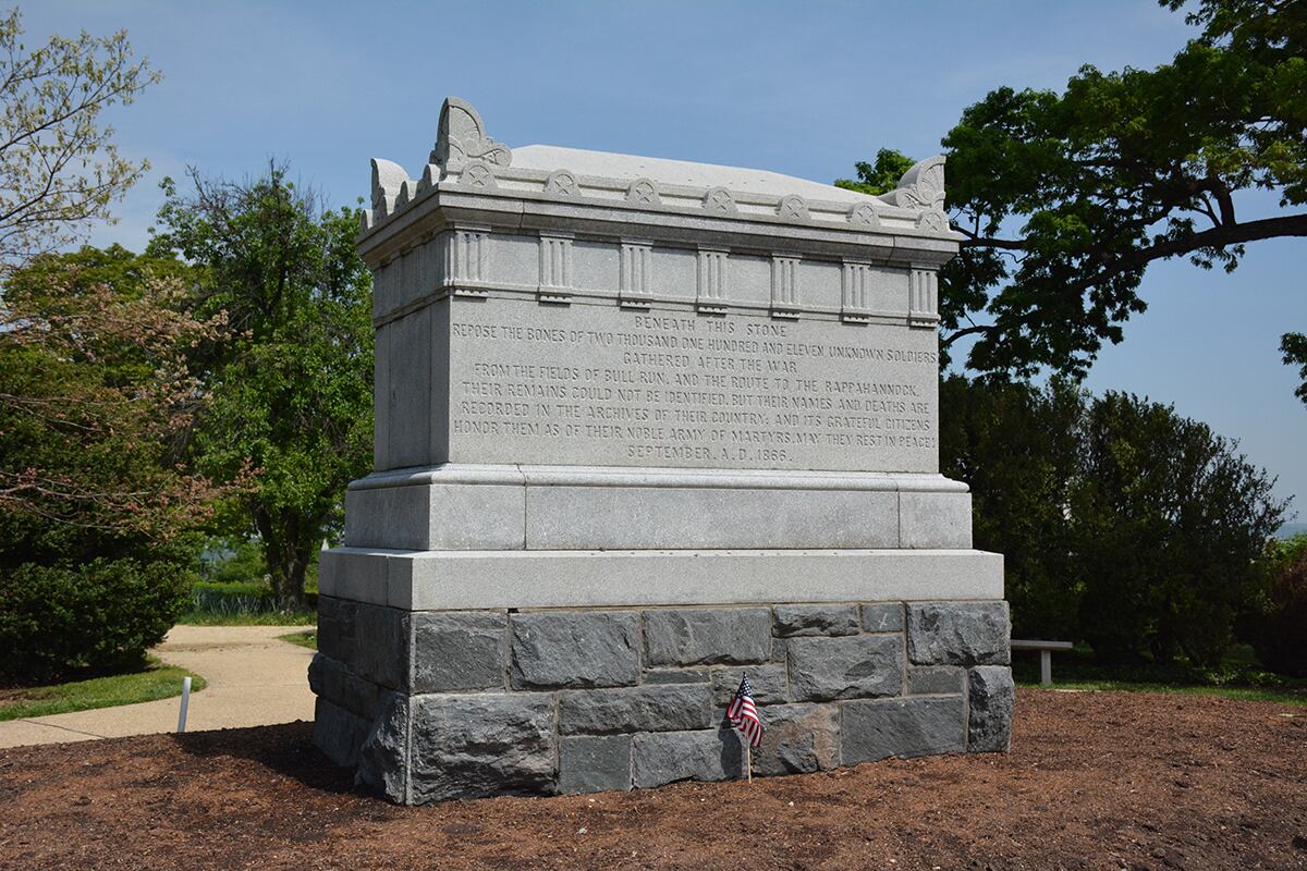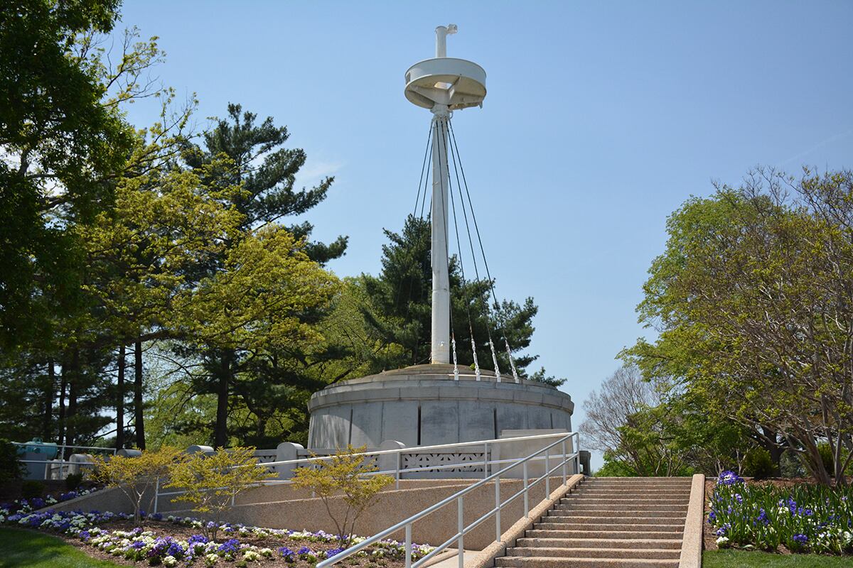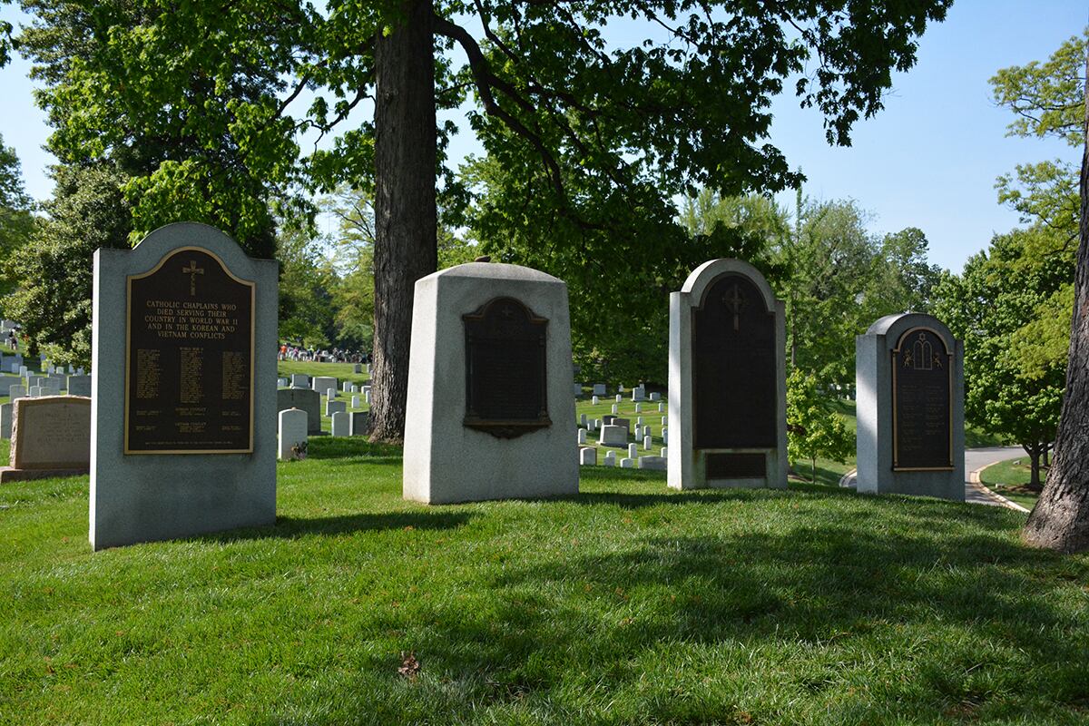 By the end of 1901 all the Confederate soldiers buried in the national cemeteries at Alexandria, Virginia, and at the Soldiers' Home in Washington were brought together with the soldiers buried at Arlington and reinterred in the Confederate section. Among the 482 persons buried there are 46 officers, 351 enlisted men, 58 wives, 15 southern civilians, and 12 unknowns. They are buried in concentric circles around the Confederate Monument, and their graves are marked with headstones that are distinct for their pointed tops. Legend attributes these pointed-top tombstones to a Confederate belief that the points would "keep Yankees from sitting on them."Near Arlington House, in what was once part of its famous rose garden, stands a monument dedicated to the unknown soldiers who died in the Civil War. The monument, dedicated in September 1866, stands atop a masonry vault containing the remains of 2,111 soldiers gathered from the fields of Bull Run and the route to the Rappahannock. The remains were found scattered across the battlefields or in trenches and brought here. This monument was the first memorial at Arlington to be dedicated to soldiers who had died in battle, and who later could not be identified. Because in some instances only a few bones or a skull were recovered, it is assumed that the vault contains the remains of Confederate soldiers as well as Union troops.The Woodhull flagpole rises 90 feet above the south lawn of the Memorial Amphitheater and is one of only two flagpoles located in Arlington National Cemetery. The other stands in front of Arlington House. Erected in 1924, the Woodhull flagpole is dedicated to the memory of Commander Maxwell Woodhull, who served in the United States Navy from 1813 to 1863. The flags on the Woodhull flagpole and the Arlington House flagpole fly at half-staff, commencing one-half hour before the first burial service of the day. They remain at half-staff until one-half hour after the last service.Chaplains from four wars rest on Chaplains Hill in Section 2 of Arlington National Cemetery. Those buried at Arlington include: the Army's first Chief of Chaplains, Colonel John T. Axton of World War I; World War II's Chief of Chaplains William A. Arnold, who was the first Chaplain to make General; and Major Charles Joseph Watters who served in Vietnam and was posthumously awarded the Medal of Honor for his actions on November 19, 1967. Unarmed, Watters was rendering aid to fallen comrades, disregarding his own safety when he was killed by a bomb explosion. Four monuments on Chaplains Hill are dedicated to the memory of chaplains who have served in the United States Armed Forces.The mast of the USS Maine Memorial is in Section 24, Map Grid O-23 1/2 of Arlington National Cemetery in Arlington, Virginia. The Maine Mast Monument, bounded on two sides by Sigsbee Drive, is named after Adm. Charles Dwight Sigsbee, who commanded the vessel as a captain at the time of its destruction. The mast is the actual main mast from the USS Maine, which was sunk in Havana Harbor, Cuba, Feb. 15, 1898. The foremast is at the U.S. Naval Academy in Annapolis, Maryland.Eleven days prior to Kennedy's assassination he returned to Arlington for the 1963 Armistice Day services. This time he did not address the crowd in the amphitheater.