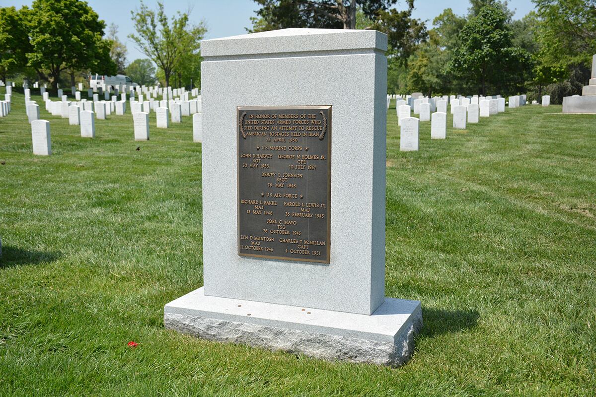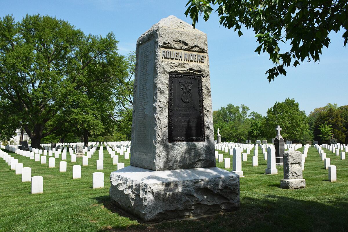 On May 23, 1994, Jacqueline Bouvier Kennedy Onassis was buried next to President Kennedy. The gravesite was completed with addition of her grave marker Oct. 6, 1994.ew countries enjoy the bonds of goodwill and friendship that the United States and Canada share. Our common border remains the longest unguarded frontier on earth, and our nations have shared triumphs and tragedies throughout history. It was in this spirit of friendship that in 1925 Canadian Prime Minister MacKenzie King first proposed a memorial to the large number of United States citizens who enlisted in the Canadian Armed Forces, and lost their lives during World War I. Because the Canadians entered the war long before the United States, many Americans enlisted in Canada to join the fighting in Europe.They became one of the best-known cavalry units in American history, though few people remember their official title, the First U.S. Volunteer Cavalry. But mention the name "Rough Riders," and visions come to mind of the charge up San Juan Hill, led by Lieutenant Colonel Theodore Roosevelt, who would later become U.S. President.The 3rd Infantry Division monument was approved by President George Bush on 29 September 1988 in Public Law 100-456. The memorial is located on the right (north) side of the curved part of Memorial Drive near the Canadian Cross and the Challenger memorial.Monuments, Memorials and points of interest at Arlington National Cemetery. Photos first appeared in an online interactive map of the cemetery. Event was the 150th anniversary of Arlington Cemetery.The fall of 1979 was a turbulent period in Iran. The Shah had been deposed by Islamic fundamentalists under the Ayatollah Khomeini, and although diplomatic relations still existed between the United States and Iran, these relations were strained. On November 4, 1979, hundreds of Iranians seized the U.S. embassy and took 66 Americans hostage. For days nothing was known of the hostages' condition until their captors finally released all female and black hostages. Later, one other man was released for medical reasons, leaving 53 Americans captives of the Iranian Moslem fundamentalists.
