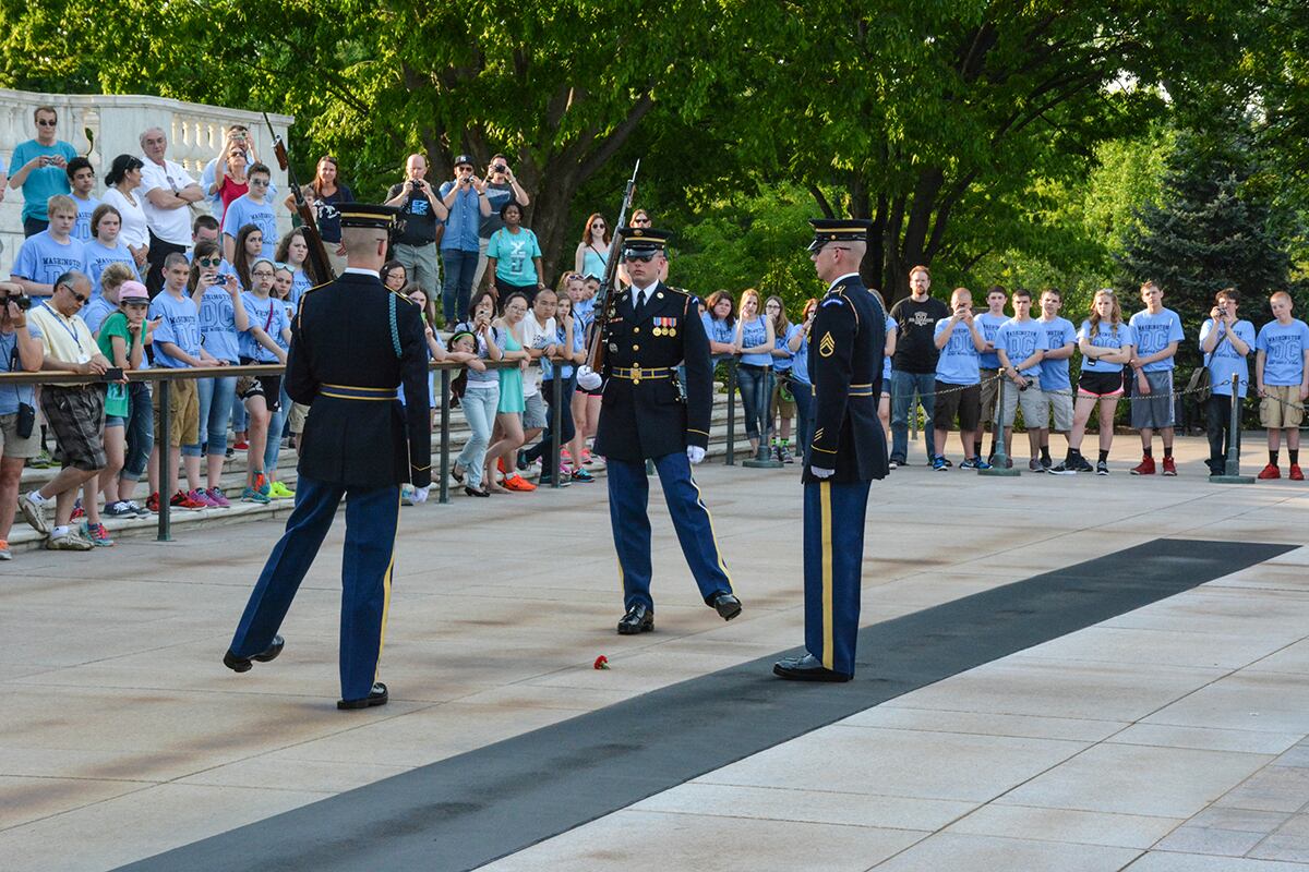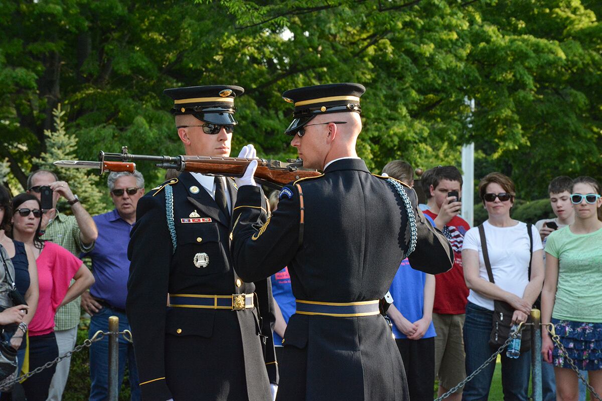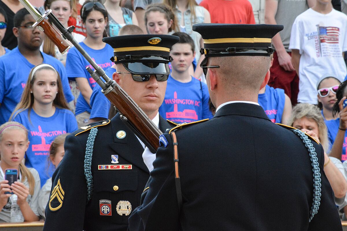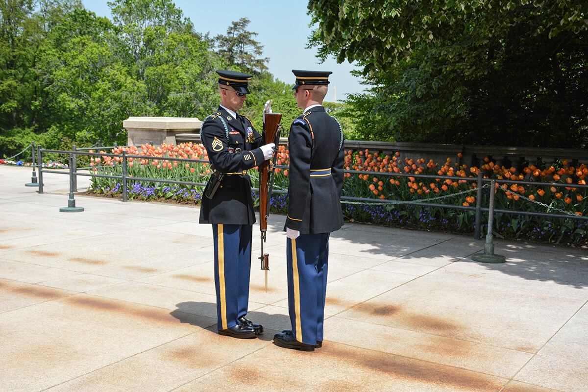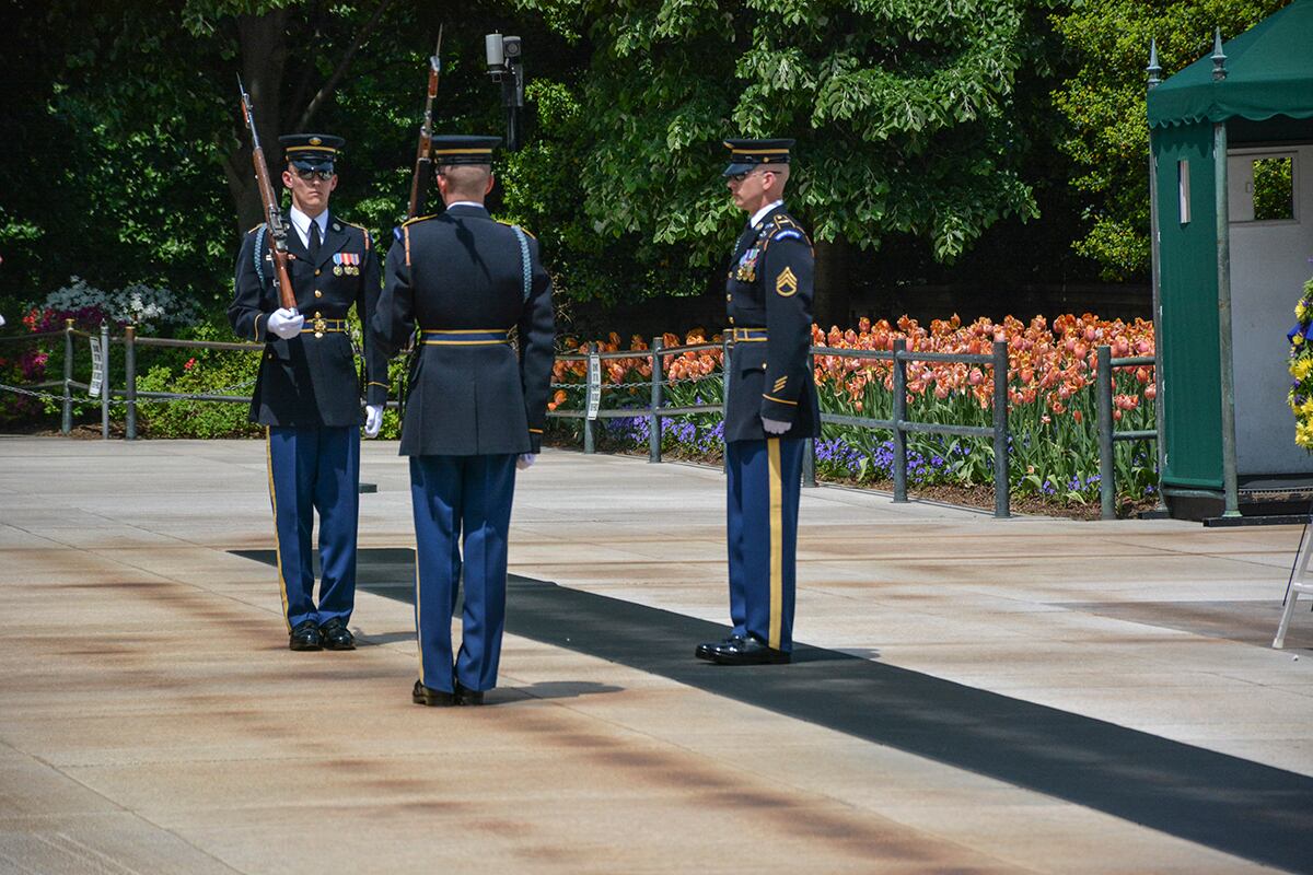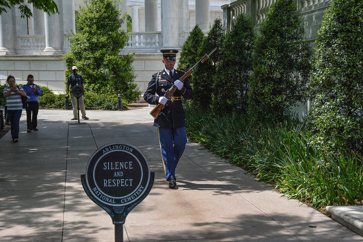 The residence of Robert E. Lee and his family before the Civil War, Arlington House connects to many important figures, issues and events in American history. Built by enslaved laborers of George Washington Parke Custis between 1802 and 1818, the house and grounds have served many purposes over the last 200 years: a memorial honoring George Washington, a family home for the Lees and Custises, a plantation estate and home to 63 enslaved people, a a military headquarters for Union troops, a community for emancipated slaves and a national cemetery. With 650,000 annual visitors, Arlington House is the most visited historic house museum in the national park system. Since 1933, the NPS has managed Arlington House, The Robert E. Lee Memorial. The 16.28-acre memorial now lies within Arlington National Cemetery, which was built entirely within the historic 1,100-acre Arlington estate, according to the National Park Service.The Tomb of the Unknown Soldier at Arlington National Cemetery stands atop a hill overlooking Washington, D.C. On March 4, 1921, Congress approved the burial of an unidentified American soldier from World War I in the plaza of the Memorial Amphitheater. The Tomb sarcophagus is above the grave of the Unknown Soldier of World War I. West of the World War I Unknown are the crypts of unknowns from World War II, Korea and Vietnam. Those three graves are marked with white marble slabs flush with the plaza.The remains of the Vietnam Unknown were exhumed May 14, 1998. Based on mitochondrial DNA testing, DoD scientists identified the remains as those of Air Force 1st Lt. Michael Joseph Blassie, who was shot down near An Loc, Vietnam, in 1972. It has been decided that the crypt that contained the remains of the Vietnam Unknown will remain vacant. The crypt cover has been replaced with one that has the inscription “Honoring and Keeping Faith with America’s Missing Servicemen, 1958-1975.”A soldier is about to take his post standing guard at the Tomb of the Unknown Soldier.A solder undergoes inspection by the Relief Commander during the changing of the guard at Arlington Cemetery's Tomb of the Unknown Soldier.The relief Commander inspects an M-14 rifle of a tomb guard.The Tomb of the Unknown Soldier is guarded 24 hours a day, 365 days a year, and in any weather by Tomb Guard sentinels. Sentinels, all volunteers, are considered to be the best of the elite 3rd U.S. Infantry Regiment (The Old Guard), headquartered at Fort Myer, Va.From October 1 to March 31 the guard is changed every hour. From April 1 through September 30 the change occurs every half hour.Thousands of visitors from around the nation and the world each day witness the Changing of the Guard.Throughout each day, visiting groups pay their respects, laying a wreath at the Tomb of the Unknown Soldier.Wreath=laying ceremonies are often repeated dozens of times each day, as visiting groups pay their respects.While standing guard, sentinels at the Tomb of the Unknown Soldier march 21 steps down the black mat behind the Tomb. They turn, face east for 21 seconds, turn and face north for 21 seconds, then take 21 steps back down the mat and repeat the process.A funeral service was conducted on September 12, 2002, in the Memorial Amphitheater at Arlington National Cemetery for the final remains of the 184 victims of the September 11, 2001 attack on the Pentagon.