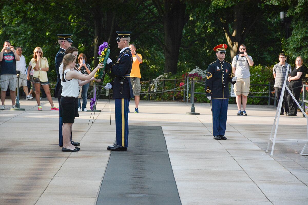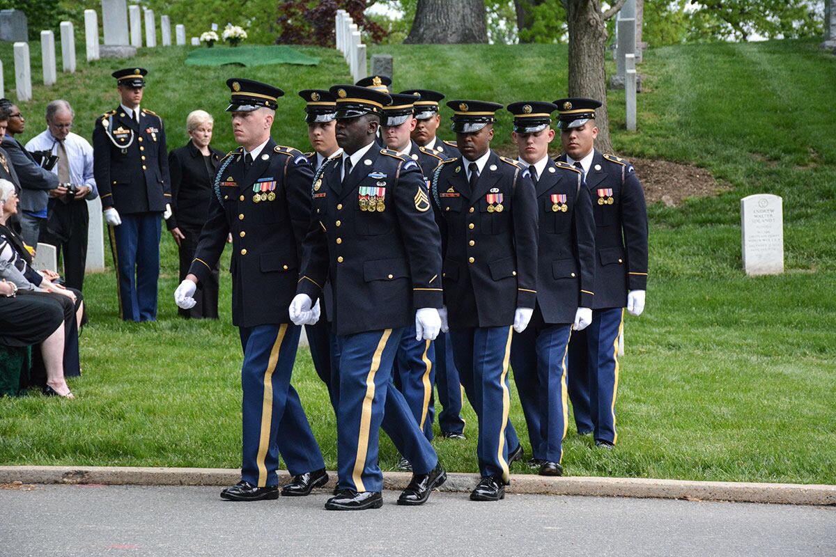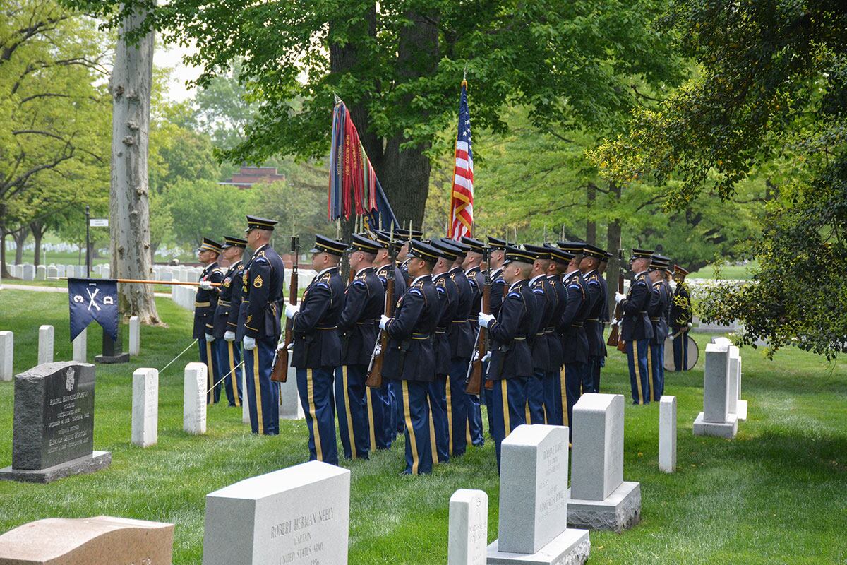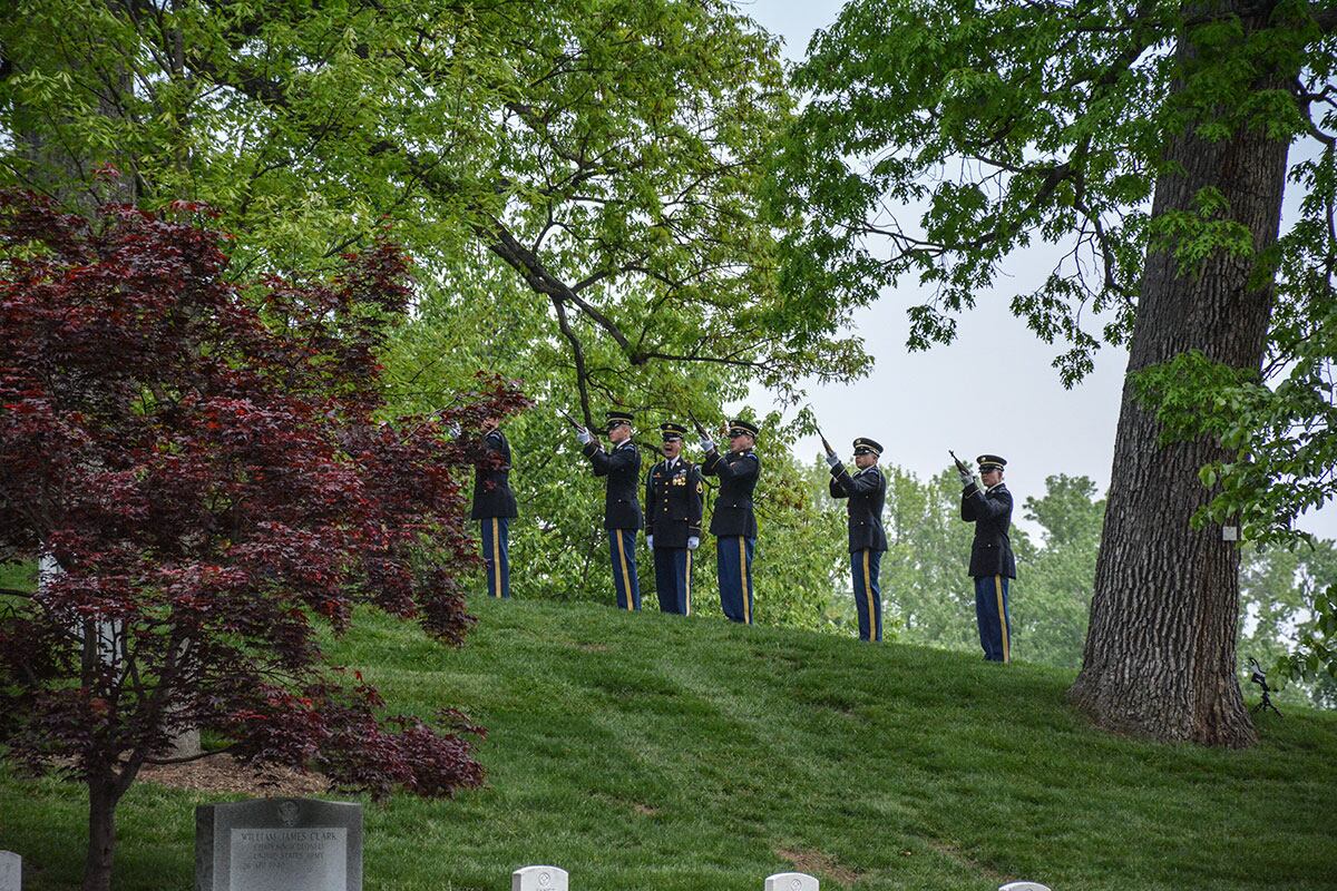 A monument dedicated to the memory of those gallant servicemen, who died in the valiant effort to rescue the American hostages, has been erected near the Memorial Amphitheater at Arlington National Cemetery. The white stone marker bears a bronze plaque listing the names and ranks of the three Marines and the five airmen. Three of those men -- Maj. Richard Bakke, Maj. Harold Lewis, Jr. and Sgt. Joel Mayo --are now buried at Arlington in a grave marked by a common headstone located about 25 feet from the group memorial.Philip Kearny, Jr. (June 2, 1815 – September 1, 1862) was a United States Army officer, notable for his leadership in the Mexican-American War and American Civil War. He was killed in action in the 1862 Battle of Chantilly.Against a background of evergreens, the heroic size white marble figure looks out upon the Army, Navy and Air Force nurses who so valiantly earned their right to lie at Arlington. The granite statue of a nurse in uniform was sculpted by Frances Rich.The Old Amphitheater was the site of the first Memorial Day ceremony held at Arlington Cemetery, on May 30, 1868. When General John Logan declared the day of remembrance for Union soldiers who had died in the Civil War.The Lockerbie Cairn, through its 270 blocks of red Scottish sandstone, memorializes the 270 lives lost in the terrorist attack on the United States when Pan Am Flight 103 was bombed Dec. 21, 1988, over Lockerbie, Scotland.During the period from April 1920 through July 1921, the remains of many servicemen buried in Europe during World War I were disinterred. These remains were either reinterred in selected cemeteries in Europe or returned to the United States. Of these, the remains of about 2100 were reinterred in Arlington National Cemetery, specifically, in Section 18. Through the efforts of the Argonne Unit American Womens Legion, the Argonne Cross was erected to their memory and in their honor. It is situated in the southwest corner of Section 18 and faces east. A grove of 19 pine trees are on 3 sides of the Cross (North, West and South). These trees are symbolic of the Argonne Forest where many of the men fought.The Spanish-American War was the first war involving the United States in which nurses were assigned as a special, quasi-military unit. The Society of Spanish-American War Nurses dedicated a monument to the memory of those brave women.Nelson Appleton Miles (August 8, 1839 – May 15, 1925) was a United States soldier who served in the American Civil War, Indian Wars, and the Spanish-American War.The Space Shuttle Columbia was lost on February 1, 2003, with her seven crew members aboard, during reentry to Earth on mission STS-107.A request for permission to erect a memorial to the Spanish American War in Arlington National Cemetery was initiated by Mrs. Winifred Lee Lyster, Chairman, Executive Committee, Spanish War Memorial and Marker, in March 1901. The design for the proposed monument was submitted to the Quartermaster General. After some revisions the Acting Quartermaster General recommended approval of the design and erection of the monument.Field Marshal Sir John Greer Dill, GCB, CMG, DSO (25 December 1881 – 4 November 1944) was a British commander in World War I and World War II. From May 1940 to December 1941 he was the Chief of the Imperial General Staff.A view of Washington from the the hill at Arlington House.More than 400,000 people are interred at Arlington National Cemetery.As of 2017, custom headstones provided by the family are no longer accepted at Arlington National Cemetery. Going forward, all headstones will be the uniform government-issue grave markers.A view of Washington from the the hill at Arlington House.Pierre Charles L'Enfant was a captain, U.S. Engineers, and a brevet major, U.S. Army, Revolutionary War. Under the direction of President George Washington, he planned the Federal City of Washington, D.C. Pierre Charles L'Enfant was born in Paris, France, Aug. 2, 1754. He died June 14, 1825, and was interred on the Digges Farm, also known as Green Hill, Prince Georges County, Md. In 1908 the Board of Commissioners of the City of Washington requested the Secretary of War to make available a suitable burial site in Arlington Cemetery. On Dec. 17, 1908, Secretary of War Luke E. Wright advised the Board of Commissioners of his approval for a site in Arlington Cemetery for the reinterment of the remains of Pierre Charles L'Enfant. The site was selected by the Board of Commissioners with the assistance of Army Capt. A. B. Shattuck, who was in charge of National Cemeteries. The L'Enfant memorial offers a view toward the Lincoln Memorial and the Washington Monument.Around 3,000 burials and interments are conducted each year at Arlington National Cemetery.Full military honors are rendered for a U.S. Army general officer.Soldiers fold the 5-foot by 9-foot memorial U.S. flag.Once folded, the flag is presented to the deceased service member's or veteran's family.According to the Veterans Administration, a United States flag is provided, at no cost, to drape the casket or accompany the urn of a deceased Veteran who served honorably in the U. S. Armed Forces. It is furnished to honor the memory of a Veteran’s military service to his or her country. Generally, the flag is given to the next-of-kin, as a keepsake, after its use during the funeral service. When there is no next-of-kin, VA will furnish the flag to a friend making request for it. For those VA national cemeteries with an Avenue of Flags, families of Veterans buried in these national cemeteries may donate the burial flags of their loved ones to be flown on patriotic holidays.Seven riflemen fire three volleys, rendering the 21-gun salute.A lone bugler plays "Taps" as a final salute.Hundreds of memorial trees throughout the cemetery are dedicated by various groups and to specific military units.