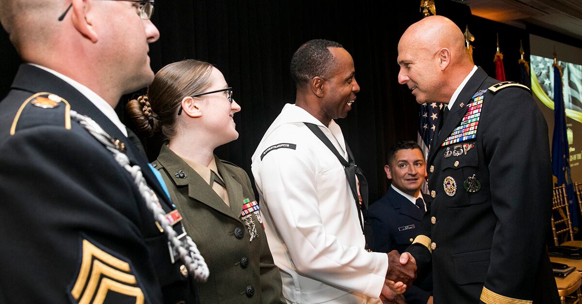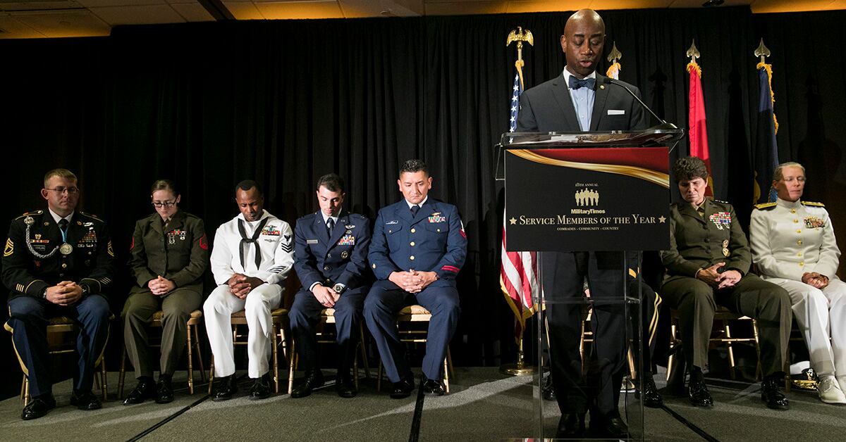 Lt. Gen. Jacqueline Van Ovost, Director of Staff, Headquarters Air Force, speaks during the Military Times Service Member of the Year awards ceremony held at the Reserve Officers Association in Washington, DC on July 11, 2018. (Kristoffer Tripplaar/for Military Times)Rear Adm. Barry Black (Ret.), Chaplain of the U.S. Senate, says a prayer during the Military Times Service Member of the Year awards ceremony held at the Reserve Officers Association in Washington, DC on July 11, 2018. (Kristoffer Tripplaar/for Military Times)Army Maj. Steven Gagner, at podium, speaks after being named the Military Times Entrepreneur of the Year award during the Military Times Service Member of the Year awards ceremony held in Washington DC on July 11, 2018. (Ben Murray/Staff)Sen. Ted Cruz (R-TX) congratulates Aviation Survival Technician 2nd Class Omar Alba, Navy Times Coast Guardsman of the Year during the Military Times Service Member of the Year awards ceremony held at the Reserve Officers Association in Washington DC on July 11, 2018. (Kristoffer Tripplaar/for Military Times)Capt. Julian Gluck, Air Force Times Airman of the Year, left, and Aviation Survival Technician 2nd Class Omar Alba, Navy Times Coast Guardsman of the Year during the Military Times Service Member of the Year awards ceremony held at the Reserve Officers Association in Washington DC on July 11, 2018. (Kristoffer Tripplaar/for Military Times)Dave Coker, President of the Fisher House Foundation, speaks during the Military Times Service Member of the Year awards ceremony held at the Reserve Officers Association in Washington DC on July 11, 2018. (Kristoffer Tripplaar/for Military Times)Vice Adm. Mary Jackson, Commander, Navy Installations Command speaks with Hospital Corpsman 1st Class Craig Humes, Navy Times Sailor of the Year during the Military Times Service Member of the Year awards ceremony held at the Reserve Officers Association in Washington DC on July 11, 2018. (Kristoffer Tripplaar/for Military Times)Sen. Bill Cassidy (R-LA) and Rep. Drew Ferguson (R-GA) escort Capt. Julian Gluck, Air Force Times Airman of the Year as he's presented with his award by Lt. Gen. Jacqueline Van Ovost, Director of Staff, Headquarters, U.S. Air Forced and Michelle Tan, Managing Editor Military Times, during the Military Times Service Member of the Year awards ceremony held at the Reserve Officers Association in Washington DC on July 11, 2018. (Kristoffer Tripplaar/for Military Times)Bonnie Carroll, President and founder of TAPS, during the Military Times Service Member of the Year awards ceremony held at the Reserve Officers Association in Washington DC on July 11, 2018. (Alan Lessig/Staff)Maj. Steven Gagner is awarded Entrepreneur of the Year during the Military Times Service Member of the Year awards ceremony held at the Reserve Officers Association in Washington DC on July 11, 2018. (Kristoffer Tripplaar/for Military Times)Sgt. 1st Class Wolfgang McLachlan, Army Times Soldier of the Year meets with Maj. Zachariah Fike, 2016 Army Times Service Member of the Year and founder of Purple Hearts Reunited, during the Military Times Service Member of the Year awards ceremony held at the Reserve Officers Association in Washington DC on July 11, 2018. (Alan Lessig/Staff)Sen. Joni Ernst (R-IA), meets with Sgt. 1st Class Wolfgang McLachlan, Army Times Soldier of the Year, Sgt. Brooke Sharp, Marine Corps Times Marine of the Year, Capt. Julian Gluck, Air Force Times Airman of the Year, and Hospital Corpsman 1st Class Craig Humes, Navy Times Sailor of the Year during the Military Times Service Member of the Year awards ceremony held at the Reserve Officers Association in Washington DC on July 11, 2018. (Kristoffer Tripplaar/for Military Times)Lt. Gen. Joseph Anderson, Deputy Chief of Staff, G-3/5/7, U.S. Army shakes hands with Hospital Corpsman 1st Class Craig Humes, Navy Times Sailor of the Year during the Military Times Service Member of the Year awards ceremony held at the Reserve Officers Association in Washington DC on July 11, 2018. (Kristoffer Tripplaar/for Military Times)Marine Sgt. Rob Jones (Ret.), Veteran of the Year is congratulated by Hospital Corpsman 1st Class Craig Humes, Navy Times Sailor of the Year during the Military Times Service Member of the Year awards ceremony held at the Reserve Officers Association in Washington DC on July 11, 2018. (Kristoffer Tripplaar/for Military Times)Aviation Survival Technician 2nd Class Omar Alba, Navy Times Coast Guardsman of the Year speaks with Vice Adm. Dan Abel, Deputy Commandant for Operations, U.S. Coast Guard during the Military Times Service Member of the Year awards ceremony held at the Reserve Officers Association in Washington DC on July 11, 2018. (Kristoffer Tripplaar/for Military Times)Sgt. Brooke Sharp, Marine Corps Times Marine of the Year meets with Marine Lt. Gen. Loretta Reynolds, during the Military Times Service Member of the Year awards ceremony held at the Reserve Officers Association in Washington DC on July 11, 2018. (Alan Lessig/Staff)Sen. Cory Gardner (R-CO) left, escorts Sgt. 1st Class Wolfgang McLachlan, Army Times Soldier of the Year as he is presented with award by Lt. Gen. Joseph Anderson, Deputy Chief of Staff, G-3/5/7 and Army Times Editor Michelle Tan, right, during the Military Times Service Member of the Year awards ceremony held at the Reserve Officers Association in Washington DC on July 11, 2018. (Kristoffer Tripplaar/for Military Times)Sen. Ted Cruz (R-TX) escorts Aviation Survival Technician 2nd Class Omar Alba, Navy Times Coast Guardsman of the Year as he's presented his award by Vice Adm. Dan Abel