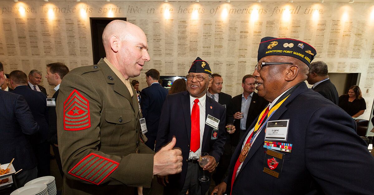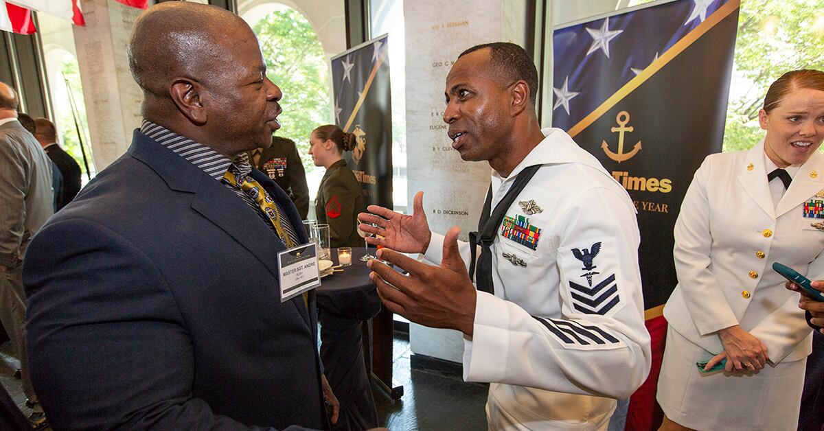 Commander, Navy Installations Command and Military Times Executive Editor Andrew Tilghman, right, during the Military Times Service Member of the Year awards ceremony held at the Reserve Officers Association in Washington DC on July 11, 2018. (Kristoffer Tripplaar/for Military Times)Sen. Joni Ernst (R-IA) meets Marine Sgt. Rob Jones (Ret.), the Military Times Veteran of the Year during the Military Times Service Member of the Year awards ceremony held at the Reserve Officers Association in Washington DC on July 11, 2018. (Alan Lessig/Staff)Navy Times Sailor of the Year meets Master Sgt. Andre Rush, left, who is White House Chef, during the Service Member of the Year awards ceremony held at the Reserve Officers Association on July 11, 2018. (Alan Lessig/Staff)Sgt. Major Daniel Krause left, meets with Montford Point Marines William Washington and Eugene Groves during the Military Times Service Member of the Year awards ceremony held at the Reserve Officers Association in Washington DC on July 11, 2018. (Alan Lessig/Staff)Sen. Cory Booker (D-NJ) left, escorts Sgt. Brooke Sharp, Marine Corps Times Marine of the Year as she is presented her award by Lt. Gen. Loretta Reynolds
