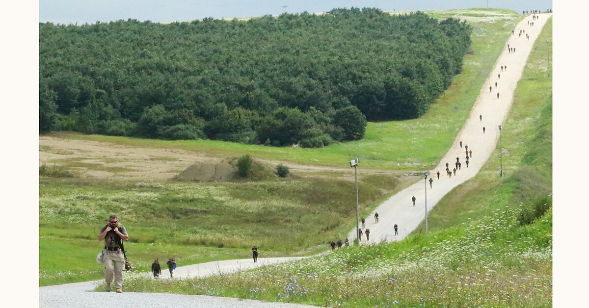 Over 180 Soldiers from across Kosovo Forces participated in the second iteration of the 22K for 22 a Day Suicide Awareness March at Camp Bondsteel, Kosovo, July 29. The march took each participant around the camp, to include trekking down the infamous "Soul Taker" hill. (Capt. Ed Alvarado/Army)