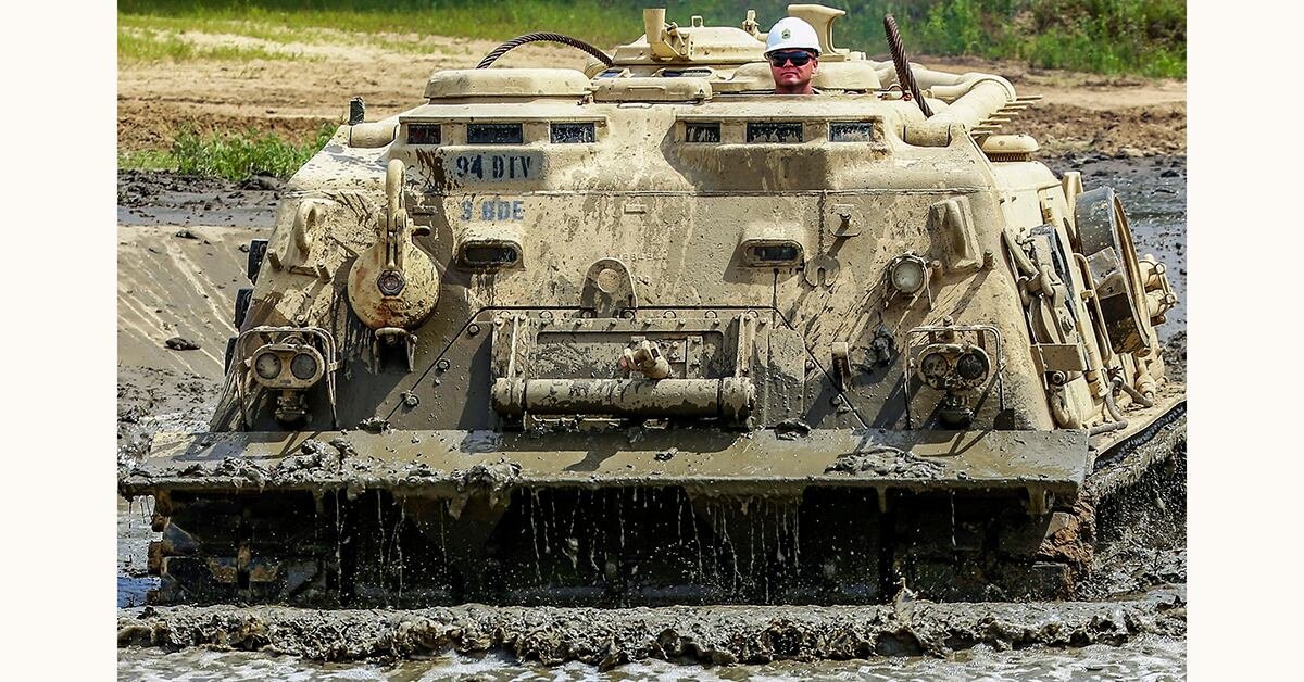 Sgt. 1st Class Timothy Phillips, senior instructor and writer with Regional Training Site (RTS)-Maintenance, drives an M88A1 Medium-Tracked Recovery Vehicle during operations for the Tracked Vehicle Recovery Course on July 19, 2018, at a training area on North Post at Fort McCoy, Wis. (Scott T. Sturkol/Army.)
