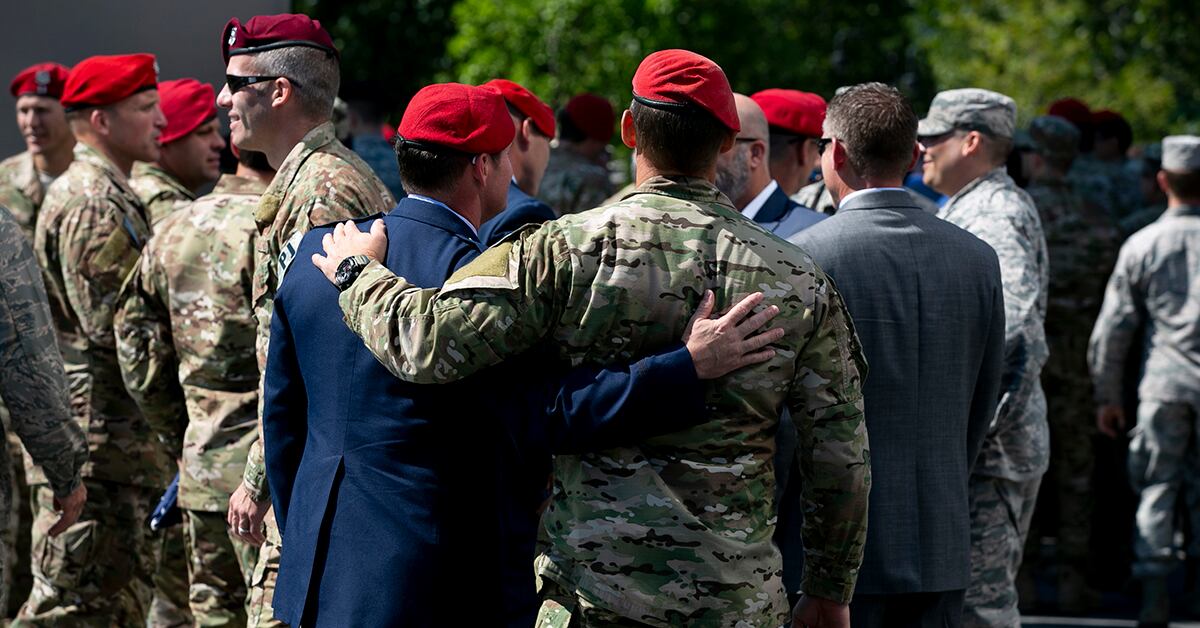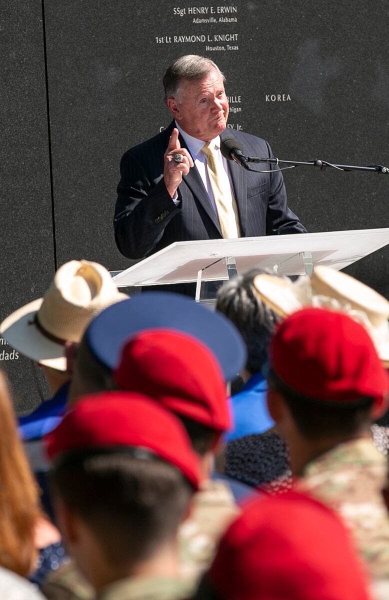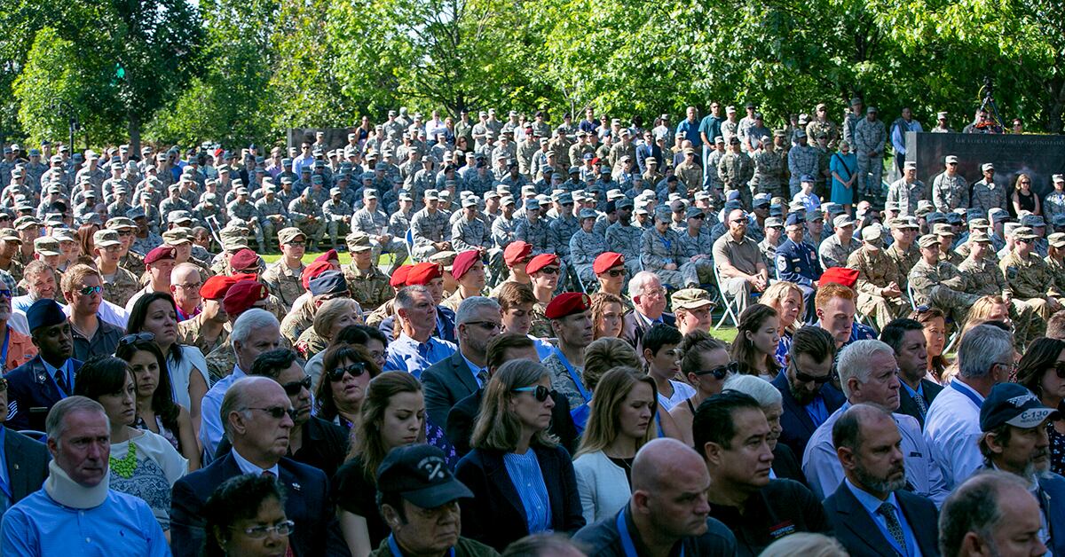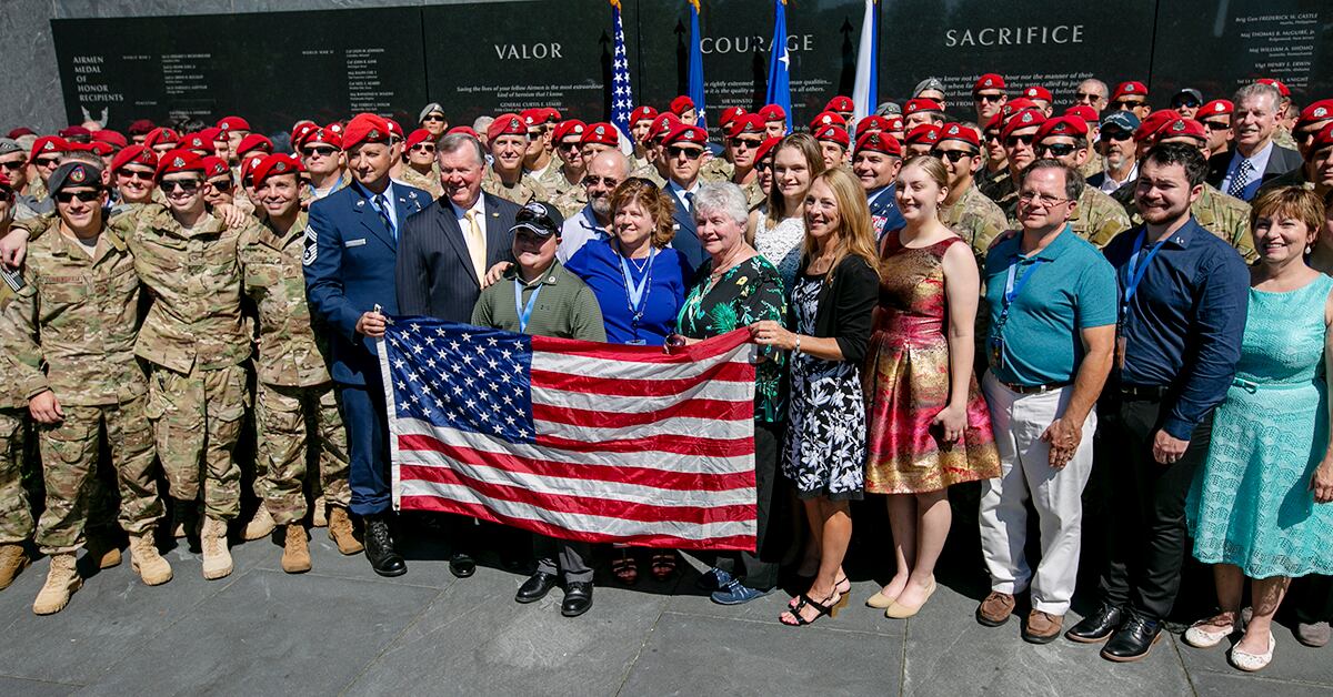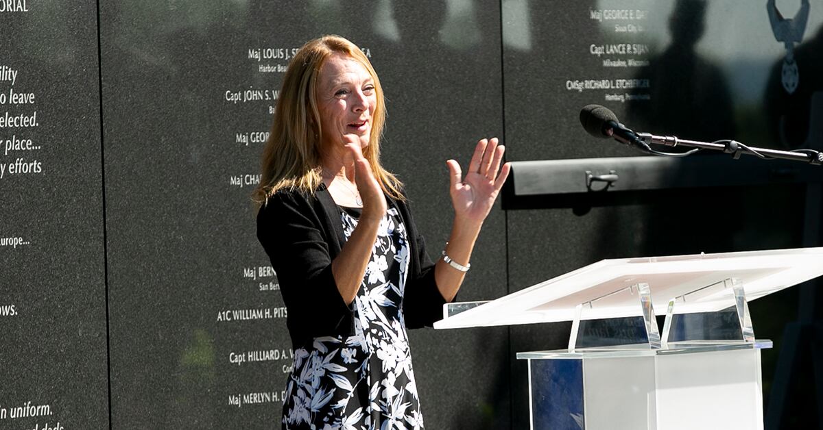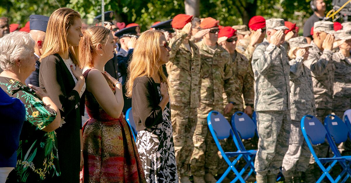 Family friend makes a heart next to the engraving for Technical Sgt. John Chapman, after his name was unveiled during a Medal of Honor ceremony at the Air Force Memorial Friday August 24, 2018. Chapman, was awarded the Medal of Honor Wednesday, for actions during a battle atop Takur Ghar mountain in Afghanistan on March 4, 2002. (Alan Lessig/Staff)Chapman's wife Valerie Nessel, his two daughters Brianna & Madison, and his mother, Terry Chapman, at left, during a Medal of Honor name unveiling ceremony at the Air Force Memorial for Air Force combat controller Technical Sgt. John Chapman, who was awarded the Medal of Honor on Wednesday for actions on Takur Ghar mountain in Afghanistan on March 4, 2002. (Alan Lessig/Staff)Hundreds of Airmen did pushups in honor of Air Force combat controller Technical Sgt. John Chapman after a Medal of Honor unveiling ceremony at the Air Force Memorial. Chapman, who was posthumously awarded the Medal of Honor Wednesday. (Alan Lessig/Staff)An AC-130U Spooky gunship, MC-130H Combat Talon II and two CV-22 Osprey tiltrotor aircraft assigned to the 1st Special Operations Wing, Hurlburt Field, Florida, fly a missing man formation over the Air Force Memorial during a Medal of Honor unveiling ceremony for Air Force combat controller Technical Sgt. John Chapman, who was posthumously awarded the Medal of Honor on Wednesday. (Alan Lessig/Staff)Valerie Nessel, spouse of U.S. Air Force Tech. Sgt. John Chapman, Brianna and Madison Chapman, daughters of Chapman, wipes away tears during a Medal of Honor unveiling ceremony at the Air Force Memorial for Air Force combat controller Technical Sgt. John Chapman, who was posthumously awarded the MOH on Wednesday. (Alan Lessig/Staff)Valerie Nessel, spouse of U.S. Air Force Tech. Sgt. John Chapman, gets a big hug from Col. (ret.) John Carney during a Medal of Honor unveiling ceremony at the Air Force Memorial for Air Force combat controller Technical Sgt. John Chapman, who was posthumously awarded the MOH on Wednesday. (Alan Lessig/Staff)Valerie Nessel, spouse of U.S. Air Force Tech. Sgt. John Chapman, along with her daughters Brianna and Madison Chapman, blows a kiss during a Medal of Honor unveiling ceremony at the Air Force Memorial. Chapman was posthumously awarded the MOH on Wednesday for actions on Takur Ghar mountain in Afghanistan on March 4, 2002. (Alan Lessig/Staff)Valerie Nessel, spouse of U.S. Air Force Tech. Sgt. John Chapman, speaks during a Medal of Honor unveiling ceremony at the Air Force Memorial for her husband who was posthumously awarded the Medal of Honor on Wednesday for actions on Takur Ghar mountain in Afghanistan on March 4, 2002. (Alan Lessig/Staff)Valerie Nessel, spouse of U.S. Air Force Tech. Sgt. John Chapman, along with daughters Brianna and Madison, removes cover from her husband's engraved name during a Medal of Honor unveiling ceremony at the Air Force Memorial. Chapman, was posthumously awarded the MOH on Wednesday for actions on Takur Ghar mountain in Afghanistan on March 4, 2002. (Alan Lessig/Staff)Chapman's family and Airmen gather together for a photo after a Medal of Honor unveiling ceremony at the Air Force Memorial for Air Force combat controller Technical Sgt. John Chapman, who was posthumously awarded the Medal of Honor on Wednesday for actions on Takur Ghar mountain in Afghanistan on March 4, 2002. (Alan Lessig/Staff)Chief Master Sgt. of the Air Force Kaleth O. Wright, left, presents Valerie Nessel, spouse of U.S. Air Force Tech. Sgt. John Chapman, and his daughters Brianna and Madison Chapman, with a letter of promotion raising his rank to Master Sgt. during a Medal of Honor unveiling ceremony at the Air Force Memorial. Chapman, was posthumously awarded the Medal of Honor on Wednesday for actions on Takur Ghar mountain in Afghanistan on March 4, 2002. (Alan Lessig/Staff)Valerie Nessel, spouse of U.S. Air Force Tech. Sgt. John Chapman, during a Medal of Honor unveiling ceremony at the Air Force Memorial for her husband who was posthumously awarded the MOH on Wednesday. (Alan Lessig/Staff)Valerie Nessel, wife of Technical Sgt. John Chapman, hugs his mother, Terry Chapman, center, along with two daughters Brianna & Madison after his name was unveiled during a Medal of Honor ceremony at the Air Force Memorial on Friday August 24, 2018. Chapman, was posthumously awarded the Medal of Honor on Wednesday for actions on Takur Ghar mountain in Afghanistan on March 4, 2002. (Alan Lessig/Staff)Hundreds of Airmen did pushups in honor of Air Force combat controller Technical Sgt. John Chapman after a Medal of Honor unveiling ceremony at the Air Force Memorial. Chapman, who was posthumously awarded the Medal of Honor Wednesday for actions on Takur Ghar mountain in Afghanistan on March 4, 2002. (Alan Lessig/Staff)More than 600 Airmen, family and friends attend a Medal of Honor unveiling ceremony at the Air Force Memorial for Air Force combat controller Technical Sgt. John Chapman, who was posthumously awarded the Medal of Honor on Wednesday for actions on Takur Ghar mountain in Afghanistan on March 4, 2002. (Alan Lessig/Staff)Airmen hug after a Medal of Honor unveiling ceremony at the Air Force Memorial for Air Force combat controller Technical Sgt. John Chapman, who was awarded the MOH on Wednesday. (Alan Lessig/Staff)Col. (ret.) John Carney, considered the father of Air Force special tactics, gets emotional as he speaks during Tech. Sgt. John Chapman’s name unveiling ceremony at the Air Force Memorial, in Arlington, Va., Aug. 24, 2018. Chapman was posthumously awarded the Medal of Honor for actions on Takur Ghar mountain in Afghanistan on March 4, 2002.