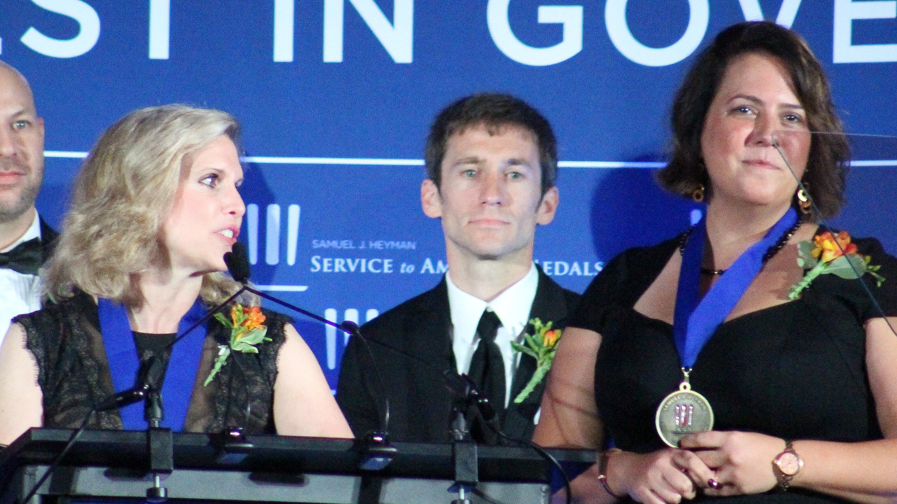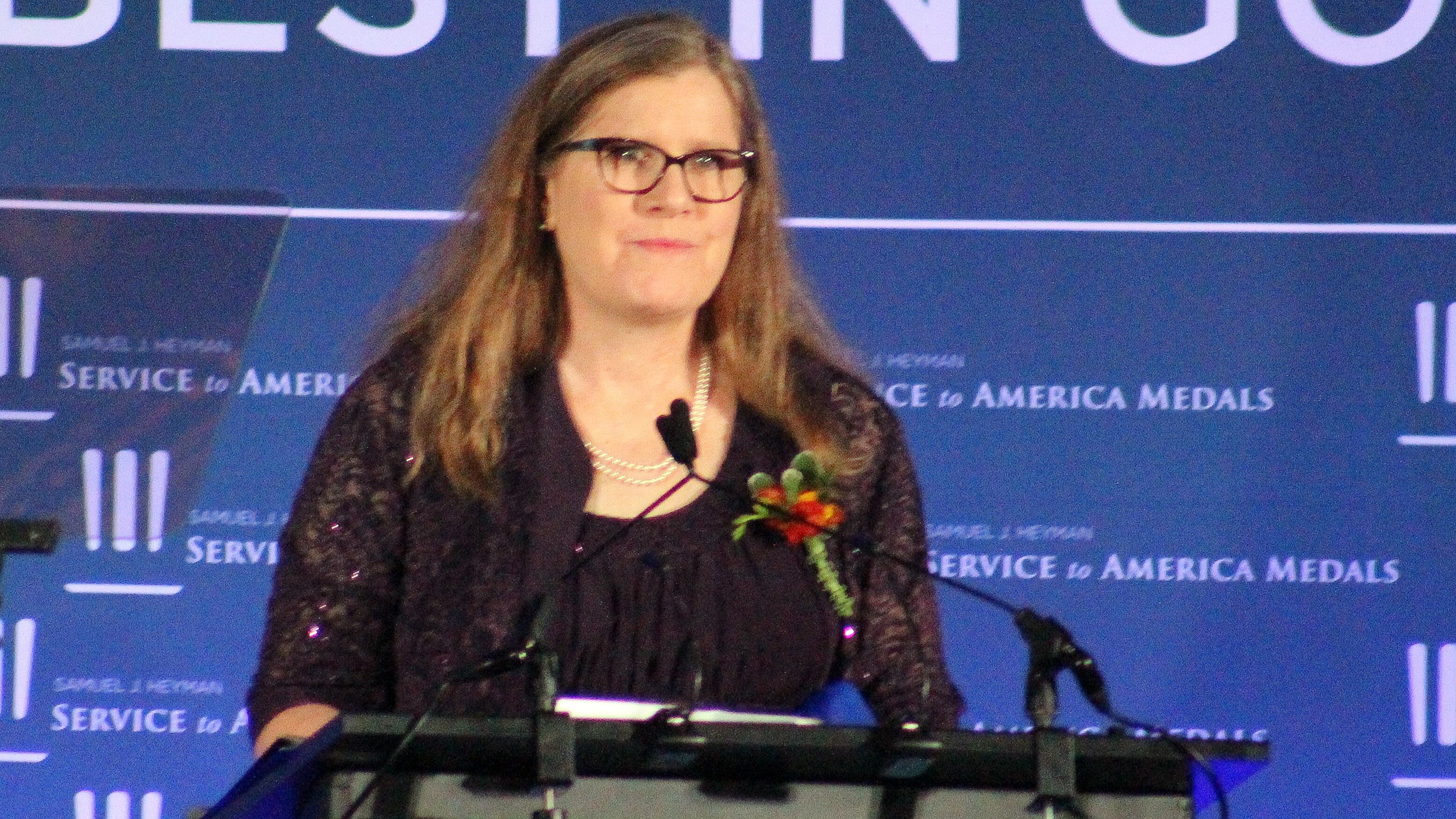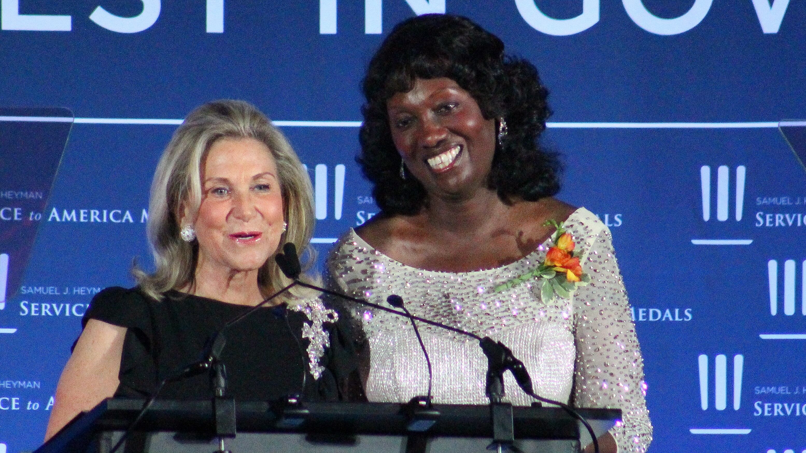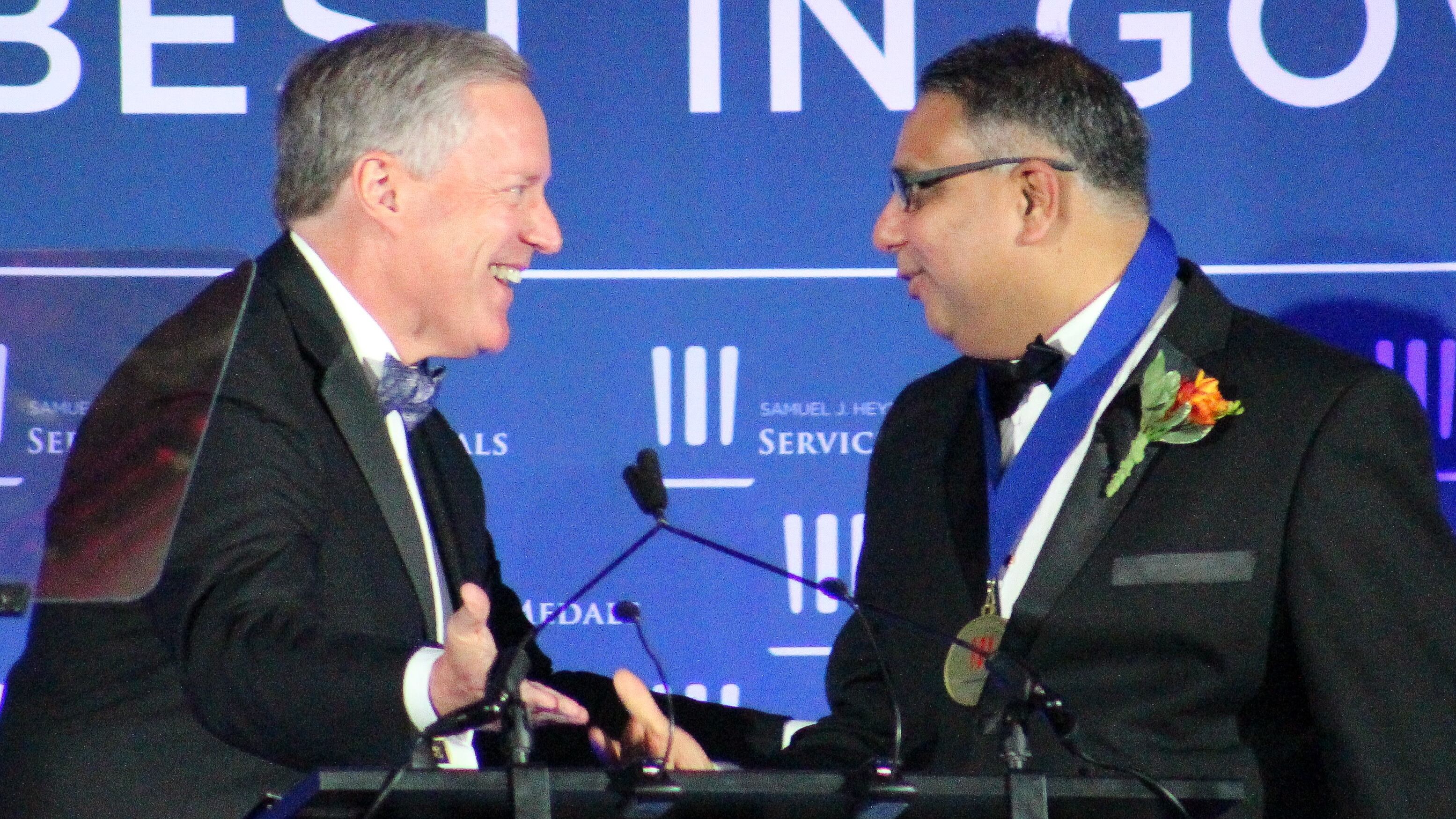 Marcella Jacobs, director of Digital Service at the Department of Veterans Affairs accepts the Management Excellence Medal at the 2018 Sammies Gala. (Jessie Bur/Staff)Rep. Mark Meadows, R-N.C., presents Parimal Kopardekar, senior technologist for Air Transportation Systems at NASA’s Ames Research Center, with the Promising Innovations Medal at the 2018 Sammies Gala. (Jessie Bur/Staff)Dr. Marshalyn Yeargin-Allsopp, associate director for Children with Special Health Care Needs at the Centers for Disease Control and Prevention, accepts the Career Achievement Medal at the 2018 Sammies Gala. (Jessie Bur/Staff)Margaret Honein, director of the Division of Congenital and Developmental Disorders at the CDC, accepts the Science and Environment Medal at the 2018 Sammies Gala. (Jessie Bur/Staff)Karen Dodge, staff attorney at the Federal Trade Commission, and Margaret Moeser, senior trial attorney at the Department of Justice, accept the Homeland Security and Law Enforcement Medal at the 2018 Sammies Gala. (Jessie Bur/Staff)Daniel Kastner, scientific director of the Division of Intramural Research at the National Institutes of Health, accepts the Federal Employee of the Year award at the 2018 Sammies Gala. (Jessie Bur/Staff)Andrew Herscowitz, coordinator for Power Africa at the U.S. Agency for International Development, accepts the National Security and International Affairs Medal at the 2018 Sammies Gala. (Jessie Bur/Staff)