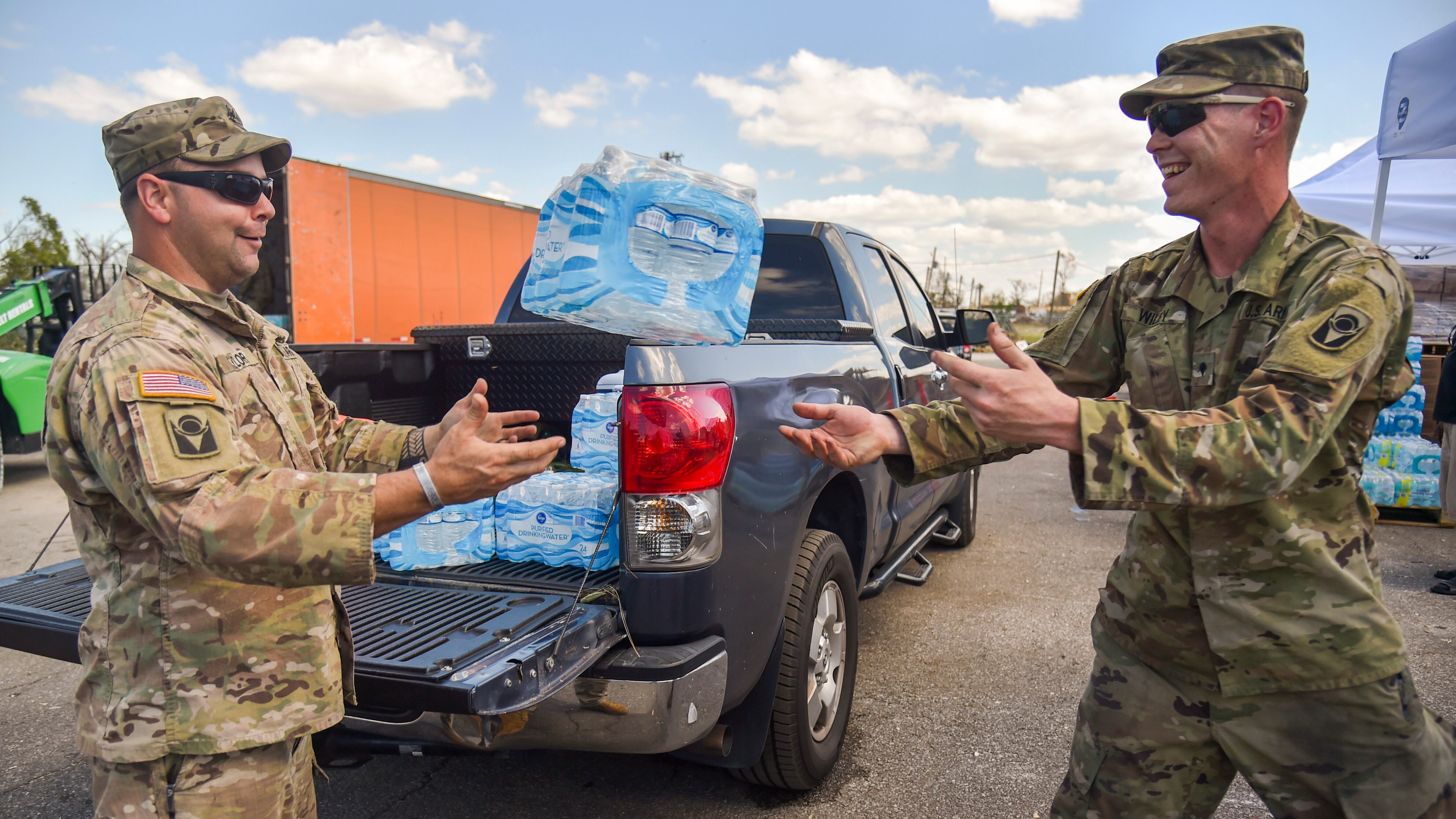 Marine Corps Sgt. Jade Woodend, assigned to Battalion Landing Team 3/1, fires a FIM-92 Stinger from the flight deck of the Wasp-class amphibious assault ship USS Essex (LHD 2) during a scheduled deployment with the Essex Amphibious Ready Group (ARG) and 13th Marine Expeditionary Unit (MEU). (MC3 Jenna Dobson/Navy)The first ever Shipborne Rolling Vertical Landing (SRVL) has been carried out with an F-35B Lightning II joint strike fighter jet conducting trials onboard the new British aircraft carrier, HMS Queen Elizabeth. The U.K. is the only nation currently planning to use the maneuver, which will allow jets to land onboard with heavier loads, meaning they wonÕt need to jettison expensive fuel and weapons before landing. (Courtesy photo by Royal Navy)Seaman Jason Heder Petitfrere, from Carrefour, Haiti, assigned to USS Constitution, leads in retiring the colors at the Maryland Fleet Week and Airshow welcoming ceremony. Maryland Fleet Week and Air Show Baltimore is BaltimoreÕs celebration of the sea services and provides an opportunity for the citizens of Baltimore to meet Sailors, Marines, and Coast Guardsman, as well as see firsthand the latest capabilities of todayÕs maritime services. (Airman Olivia Manley/Navy)Malcolm Perry #10 of the Navy Midshipmen is tackled by Delvon Randall #2 of the Temple Owls during the first quarter at Navy-Marines Memorial Stadium on October 13, 2018 in Annapolis, Maryland. (Will Newton/Getty Images)GunnerÕs Mate Seaman Mason Mendiola tracks a small boat with a remote operating console for the Mark 38 25 mm machine gun system during a general quarters exercise aboard the guided-missile destroyer USS Jason Dunham (DDG 109). Jason Dunham is deployed to the U.S. 5th Fleet area of operations in support of naval operations to ensure maritime stability and security in the Central Region, connecting the Mediterranean and the Pacific through the western Indian Ocean and three strategic choke points. (MC3 Jonathan Clay/Navy)Members of the US Army distribute water to victims of Hurricane Michael, in Panama City, Florida, on October 14, 2018. - Four days after Hurricane Michael's devastating strike, search teams in Florida pressed their hunt for victims into hard-to-reach areas Saturday, as the death toll rose to 17 and officials scrambled to deliver aid to those who lost everything.The mammoth storm, which made landfall as a Category 4 storm on Wednesday, claimed lives in four states, but Florida suffered the worst damage by far. (HECTOR RETAMAL/AFP/Getty Images)Florida National Guard Spc. Thomas Brinsko, with the 753rd Brigade Engineer Battalion, Alpha Co., from Tallahassee, Florida, cuts and removes tree branches from the roadways after the strike of Hurricane Michael, Oct. 13, 2018, in Panama City, Florida. (Pfc. Arcadia Jackson/National Guard)A Coast Guard crew member aboard an HC-130 Hercules airplane from Air Station Clearwater, Florida, drops a self-locating datum marker buoy to determine the flow of storm surge during an aerial assessment of damage due to Hurricane Michael near Apalachicola, Florida, on Oct. 11, 2018. (Petty Officer 2nd Class Ashley Johnson/Coast Guard)A Marine with the 31st Marine Expeditionary UnitÕs Amphibious Reconnaissance Platoon swims toward a Combat Rubber Raiding Craft during Helocast and Special Patrol Insertion and Extraction training, underway in the East China Sea, Oct. 14, 2018. Helocasting and SPIE operations allow the recon Marines to enter and exit tactical landing zones that are inaccessible to helicopters during amphibious operations. (Lance Cpl. Kealii De Los Santos/Marine Corps)Corporal Mary London, an administrative specialist with Combat Logistics Battalion 22, 22nd Marine Expeditionary Unit, coaches Petty Officer 3rd Class Emilie Evans, a hospital corpsman with CLB 22, on proper firing positions during Female Engagement Team training at Camp Lejeune, N.C., Sept. 10, 2018. Female Engagement Team Marines act as advisers and liasons in foreign countries and help to train their soldiers to act as a quick reaction force. (Lance Cpl. Tawanya Norwood/Marine Corps)Army West Point football coach Jeff Monken leads the Army football team as they "Sing Second" after defeating San Jose State University 52-3 during Army vs. SJSU at LeviÕs Stadium in Santa Clara, California, Oct. 13, 2018.