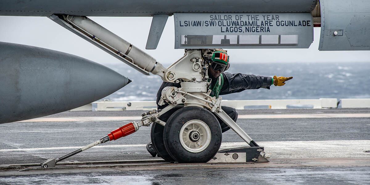 Norfolk Va. - The aircraft carrier Abraham Lincoln passes Thimble Shoals Lighthouse, Jan. 25, on the way to the Atlantic Ocean for her Composite Unit Training Exercise (Mark D. Faram/staff)Airman Aorian Johnson, plane captain for a Super Hornet from Strike Fighter Squadron 25 awaits the pilot during the carrier Abraham Lincoln's Composite Unit Training Exercise (Mark D. Faram/Staff)Flight deck crews position aircraft at the bow catapults for launch during the carrier Abraham Lincoln's Composite Unit Training Exercise (Mark D. Faram/Staff)A Super Hornet launches off the angle deck of the aircraft carrier Abraham Lincoln during her Composite Unit Training Exercise (Mark D. Faram/Staff)The reflection of the aircraft carrier Abraham Lincoln is caught in an E-2C Hawkeye's cockpit window. (Mark D. Faram/Staff)A Super Hornet catches the wire on board the aircraft carrier Abraham Lincoln during her Composite Unit Training Exercise (Mark D. Faram/Staff)A Super Hornet fighter is waved off from landing on board the aircraft carrier Abraham Lincoln during her Composite Unit Training Exercise (Mark D. Faram/Staff)Boatswain's Mate Seaman Samuel Rodriguez, right, and Boatswain's Mate Seaman Andrea Savcedo man the helm of the aircraft carrier Abraham Lincoln during its Composite Unit Training Exercise. (Mark D. Faram/Staff)A Super Hornet is waved off from landing on board the aircraft carrier Abraham Lincoln during her Composite Unit Training Exercise (Mark D. Faram/Staff)Flight deck crews work on parked Super Hornets during the carrier Abraham Lincoln's Composite Unit Training Exercise (Mark D. Faram/Staff)A flight deck crewman checks the launching gear of a Super Hornet fighter in preparation for a catapult launch. (Mark D. Faram/staff)A Sikorsky SH-60 Seahawk helicopter lands after a stint standing guard off the the aircraft carrier Abraham Lincoln during her Composite Unit Training Exercise (Mark D. Faram/Staff)