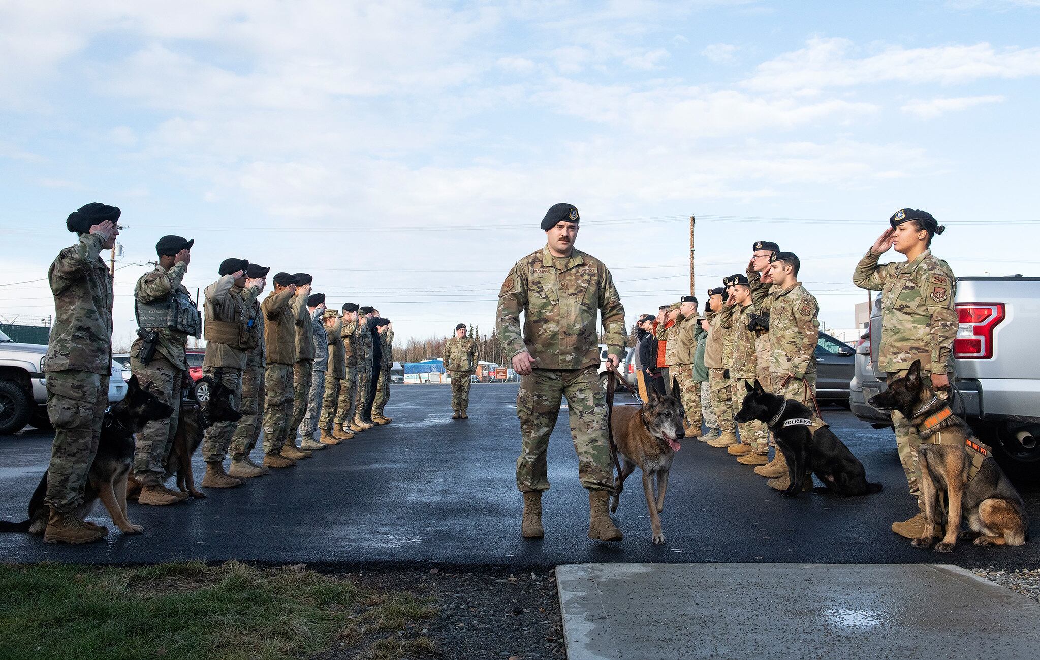 Quartermaster Seaman Marquis Lewis, right, instructs Quartermaster Seaman Khalil Hancock, on how to hoist the American flag as the Ticonderoga-class guided-missile cruiser USS Normandy (CG 60) prepares to depart Souda Bay, Greece, on Oct. 10, 2019. (Mass Communication Specialist 2nd Class Michael H. Lehman/Navy)Members of the 673d Security Forces Squadron render a final salute to retired military working dog Dino as he is escorted by his former handler and owner, Staff Sgt. Scott Brakefield, during his final walk at Joint Base Elmendorf-Richardson, Alaska, Oct. 17, 2019. Dino was credited with 61 narcotic finds. Due to his declining health and quality of life, military veterinarians decided to euthanize Dino. (Alejandro Peña/Air Force)Command Sgt. Maj. Ted Copeland, command sergeant major of the U.S. Army Reserve, performs the sprint-drag-carry event for a practice Army Combat Fitness Test (ACFT) at Fort Eustis, Va., Oct. 25, 2019, during the Army Reserve Senior Enlisted Council. (Master Sgt. Michel Sauret/Army Reserve)Airman Mario Diaz, 2nd Security Forces Squadron installation access controller, guards a B-52H Stratofortress during exercise Global Thunder 20 at Barksdale Air Force Base, La., Oct. 22, 2019. (Senior Airman Tessa B. Corrick/Air Force)Airman James Eyler, a 31st Aircraft Maintenance Squadron crew chief, washes under an HH-60G Pave Hawk helicopter at Aviano Air Base, Italy, Oct. 22, 2019. (Airman 1st Class Ericka A. Woolever/Air Force)A Marine attached to Deployment Processing Command Reserve Support Unit-East, Force Headquarters Group, runs water on his face after gas chamber training at Marine Corps Base Camp Lejeune, N.C., Oct. 22, 2019. (Sgt. Andy O. Martinez/Marine Corps)Staff Sgt. Stephen Zbinovec, 2nd Aircraft Maintenance Squadron, 96th Aircraft Maintenance Unit crew chief, inspects the engine of a U.S. Air Force B-52H Stratofortress at RAF Fairford, United Kingdom, Oct. 18, 2019. (Senior Airman Stuart Bright/Air Force)Airmen unload cargo off a C-17 Globemaster III at Bagram Airfield, Afghanistan, Oct. 20, 2019. (Staff Sgt. Matthew Lotz/Air Force)Marine Corps 1st Lt. Zachary Scalzo participates in a combat marksmanship range during exercise Fuji Viper 20.1 at Camp Fuji, Japan, Oct. 16, 2019. (Cpl. Timothy Hernandez/Marine Corps)Royal Brunei armed forces discuss aircraft capabilities with U.S. Navy sailors inside a P-8 Poseidon aircraft on Oct. 23, 2019, during a distinguished visitor tour of the aircraft in support of Cooperation Afloat Readiness and Training (CARAT) Brunei at Rimba Air Base. (Mass Communication Specialist 2nd Class Christopher A. Veloicaza/Navy)