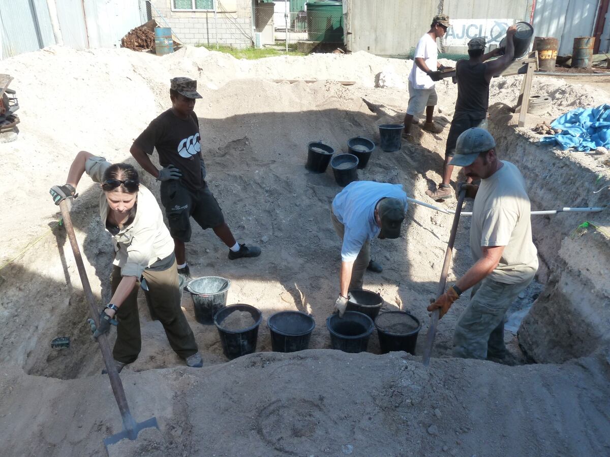 Evans assisted the History Flight archaeological team in excavating Cemetery 27, which was located under a parking lot on Betio.
