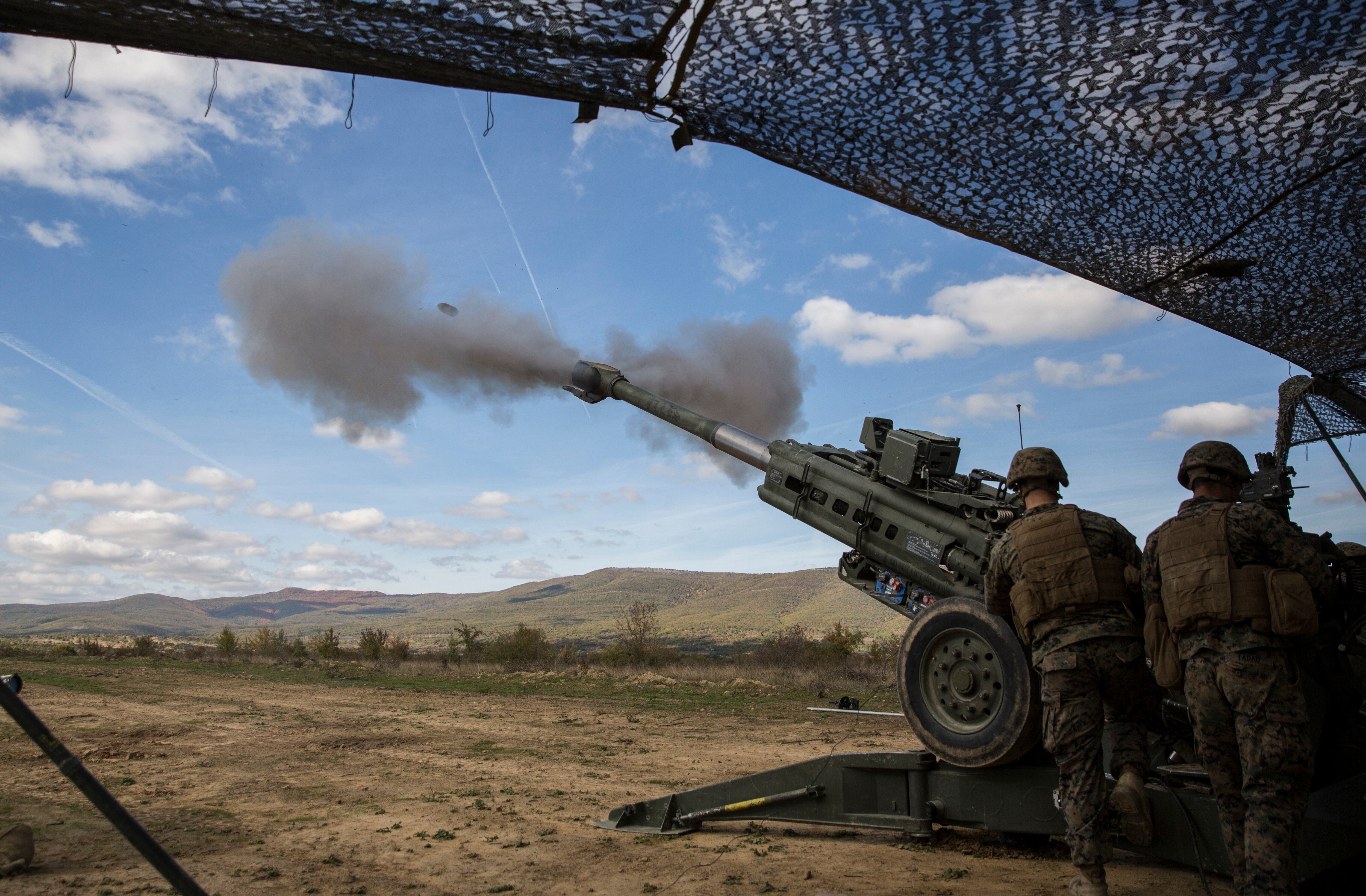 Marines with the Combined Arms Company demonstrate the M777 howitzer to Bulgarian troops during a live-fire exercise for Platinum Lion 16-1 at Novo Selo Training Area on Oct. 29.