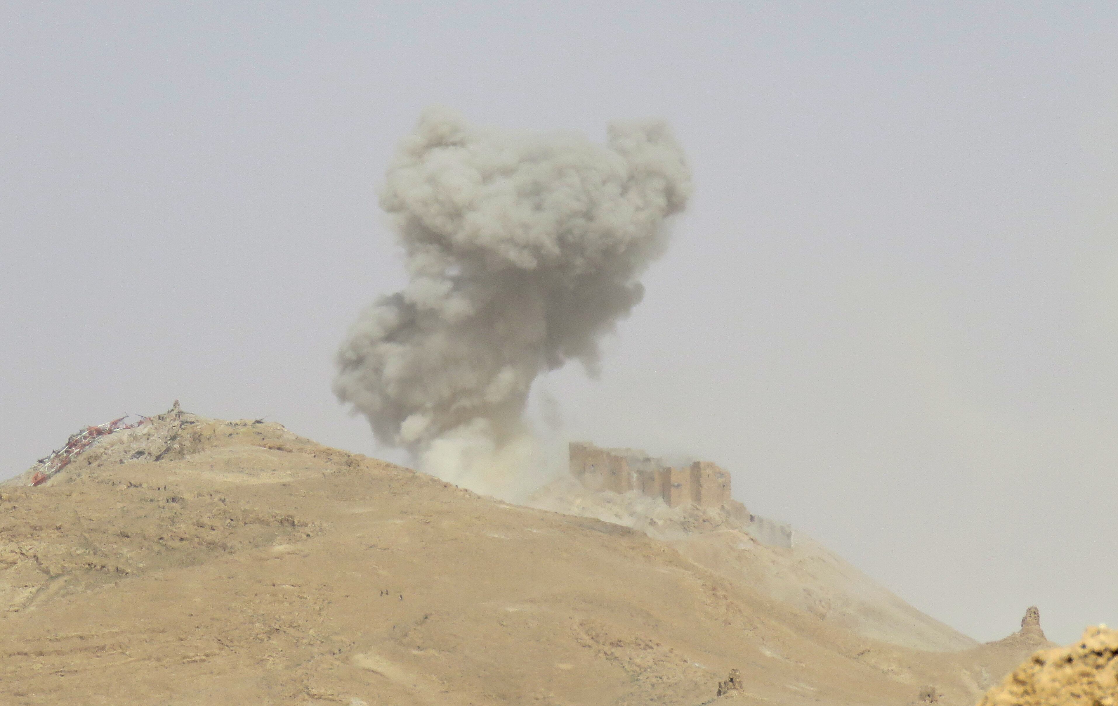 Footage broadcast on Lebanese stations aligned with the Syrian government showed smoke rising over Palmyra's skyline, as tanks and helicopters fired at positions inside the town. IS began evacuating civilians this week to other parts of its territories in Syria. No civilians remain in the town, a Palmyra resident who left earlier this week told The Associated Press, speaking on condition of anonymity out of safety concerns.