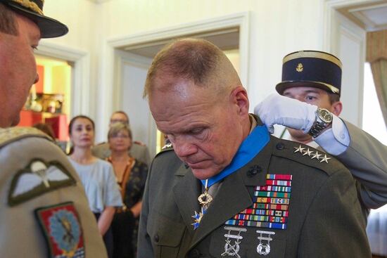 The ceremony at the Aisne-Marne American Cemetery in the village of Belleau featured speeches Marine Corps Commandant Gen. Robert Neller and other military officials, prayers, wreath laying, poem readings, and the national anthems of the three countries.
