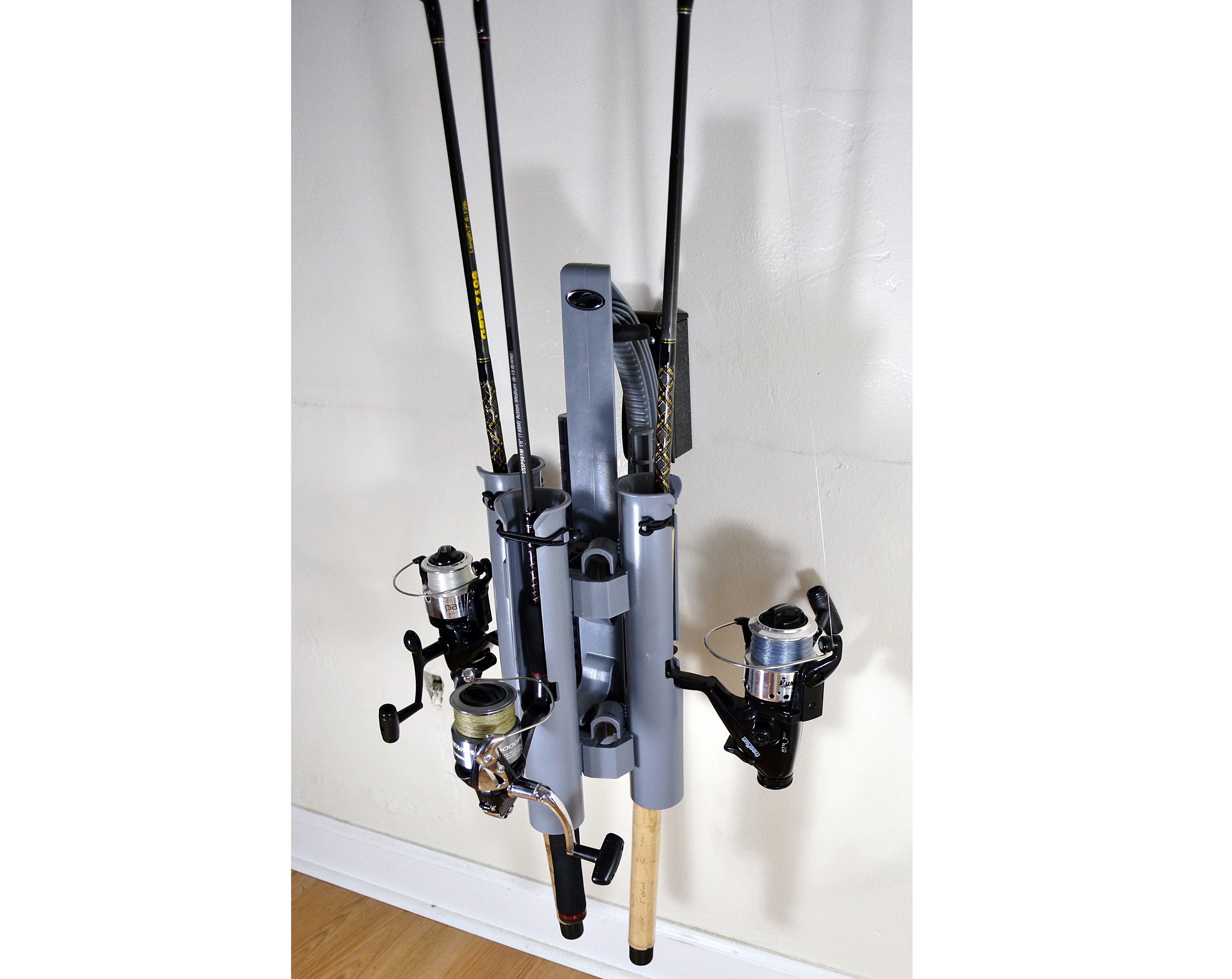 The wall-hanging mount, sold separately, is made of powder-coated steel, has an extra-large backplate and includes all mounting screws and anchors. It supports up to 75 pounds. The Rod-Runners run $39-$59, with the wall mounts going for $16.20. Available now.