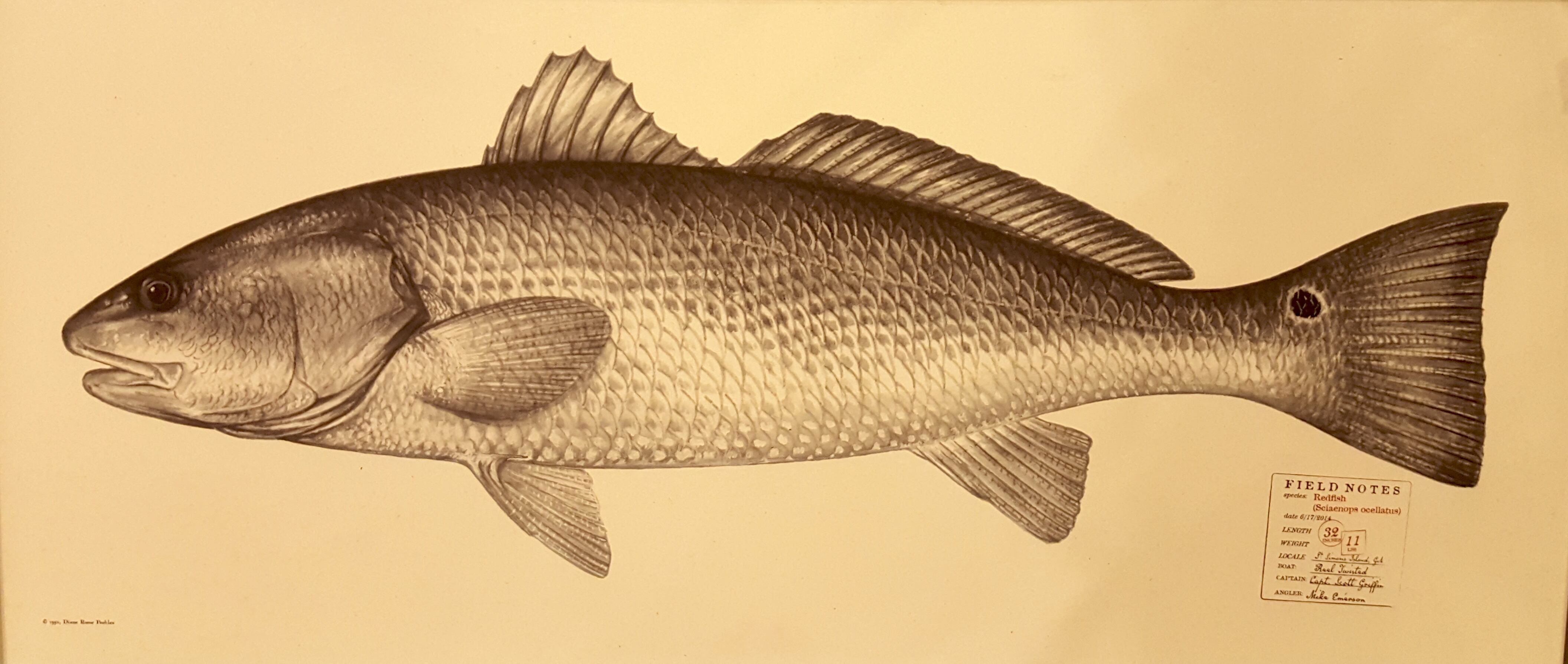 This unique gift item is designed to be an alternative to traditional taxidermy or even fiberglass replicas of trophy catches. Just document the dimensions of a trophy fish you caught and released. Field notes on the print document the angler’s name, date caught and species of fish. The print is the exact size of the fish caught. Prints are created using archival paper and inks. $5 per fish inch. Available now.