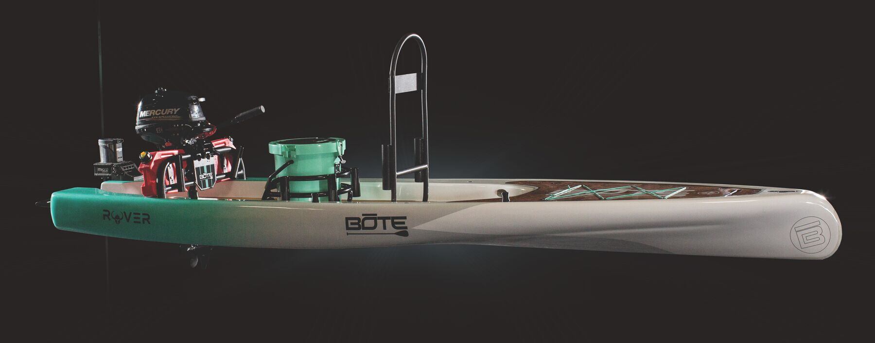 This unique hybrid transforms from a stand-up paddleboard to a fast-moving, motorized skiff in seconds — no tools required. They call it a “microskiff”; it’s a unique design.