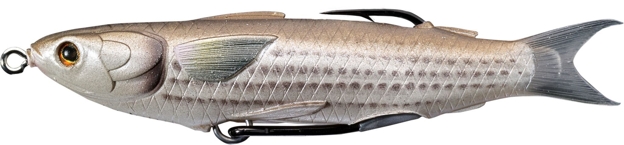 Small mullet are saltwater gamefish snack foods. This soft, hollow-body lure is designed for easy flipping into cover — around docks, mangrove edges, grass lines and more. You can also walk it across open water to trigger explosive strikes.