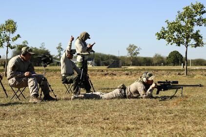 A judge gives the thumbs-up gesture, signaling that a member of the Chilean's special operations team hit his target during the FBI shooting event at Vista Alegre in Villa Hayes, Paraguay, July 19, 2017, part of Fuerzas Commando 2017. (Sgt. Christine Lorenz/Army)